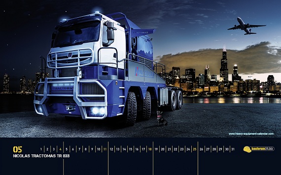 Bauforum24 1.491 Geschrieben 30. April 2014 Autor Geschrieben 30. April 2014 Das Wallpaper mit dem Heavy Equipment 2014 Motiv für den Monat Mai ist ab sofort zum kostenlosen Download verfügbar: Nicolas Tractomas TR 8x8Das Heavy Equipment 2014 Mai Motiv Nicolas Tractomas TR 8x8 - jetzt als Poster bestellenWallpaper Nicolas Tractomas TR 8x8 in verschiedenen AuflösungenJanuar 2014: Liebherr T 264Februar 2014: Hamm 3412 HTMärz 2014: Liebherr L 586 XPowerApril 2014: Vermeer T1255Der Tractomas vom französischen Hersteller Nicolas proklamiert für sich den Titel der größten Zugmaschine der Welt. Die These wird untermauert von satten 1.000 PS unter der Haube. Die Maximalgeschwindigkeit des Schwerlast Profis liegt bei rund 65 km/h. Damit dürfte er theoretisch sogar auf deutschen Autobahnen mitmischen, oder auf den Interstates rund um Chicago.Allerdings wäre bei den Abmessungen die Fahrt wohl schnell zu Ende: 3,50 Meter Höhe und 4,50 Meter Breite sind nix für ordinären Fernverkehr. Wie gut, dass man woanders verständnisvoller mit den Stärken des Franzosen umgeht. Zum Beispiel in Australien oder Südafrika. Dort darf der Tractomas dann zeigen was er kann: Als Roadtrain mit einem Gesamtzuggewicht von 750 Tonnen. Da wundert sich auch Bauforum24 Maskottchen ?Lotte? im Heavy Equipment Calendar Motiv Mai.Zum kostenlosen Wallpaper Download... Video: Bauforum24 TV Tractomas ? Schwerlastgigant von Nicolas mit 1.000 PS Zitieren