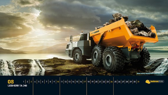 Bauforum24 1.491 Geschrieben 31. Juli 2014 Autor Geschrieben 31. Juli 2014 Das Wallpaper mit dem Heavy Equipment 2014 Motiv für den Monat August ist ab sofort zum kostenlosen Download verfügbar: Liebherr TA 240Das Heavy Equipment 2014 August Motiv Liebherr TA 240 - jetzt als Poster bestellenWallpaper Liebherr TA 240 in verschiedenen AuflösungenJanuar 2014: Liebherr T 264Februar 2014: Hamm 3412 HTMärz 2014: Liebherr L 586 XPowerApril 2014: Vermeer T1255Mai 2014: Nicolas Tractomas 8x8Juni 2014: Liebherr R 976Juli 2014: CAT 992K & CAT 777GMit Huckepack zur schönen Aussicht. Der Liebherr Dumper TA 240 genießt die Abendstimmung in den schottischen Highlands. In seine Mulde passen 26 Kubikmeter und 40 Tonnen Nutzlast. Sein V8 Turbodiesel mit 16,2 Liter Hubraum bringt stramme 476 PS auf alle sechs Räder. Davon darf Otto Normal in seinem 2 Liter TDI nur träumen. Wohl auch besser so, denn 2.500 Newtonmeter bei 1.300 Umdrehungen würden der Familienkutsche schon im Standgas die Antriebswellen abscheren. Abendstimmung mit dem Liebherr TA 240 im August 2014.Zum kostenlosen Wallpaper Download... Zitieren