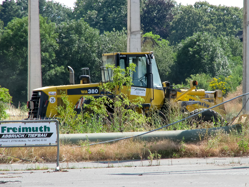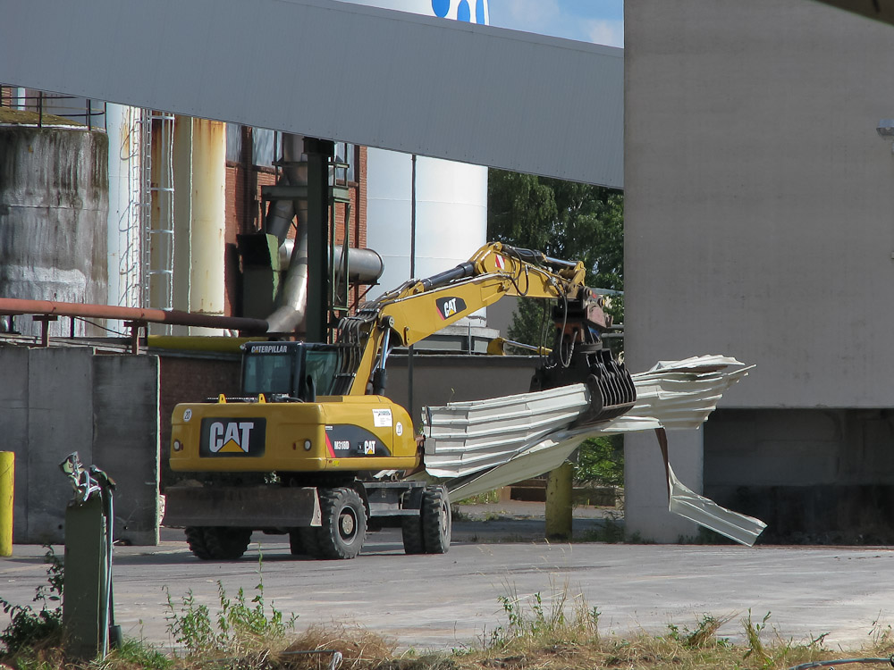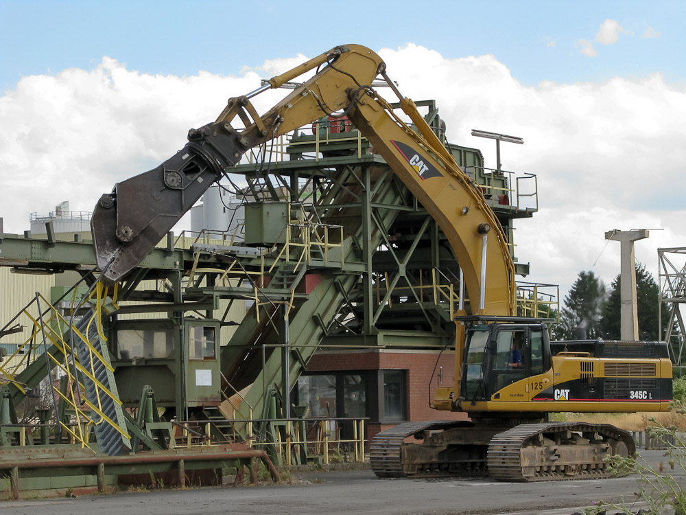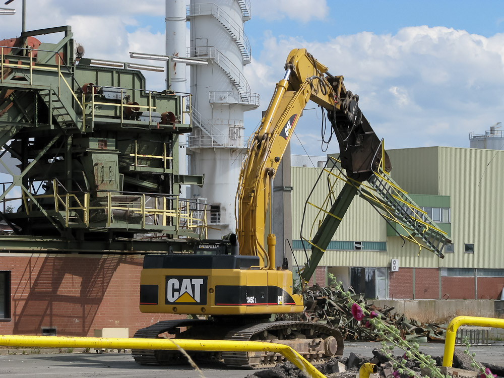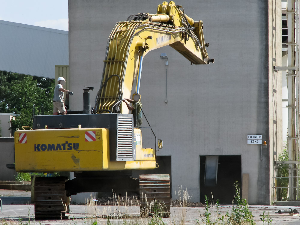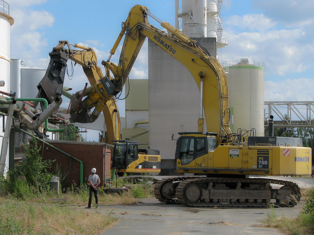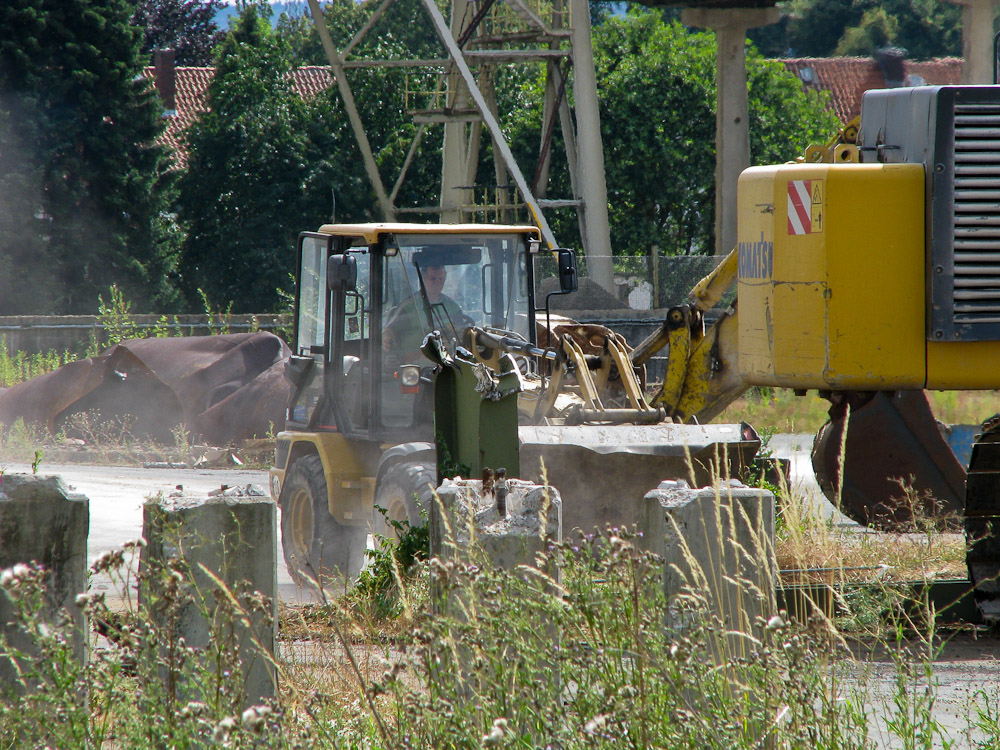 Colourconcept 7.210 Geschrieben 19. Juli 2010 Geschrieben 19. Juli 2010 (bearbeitet) Der Komatsu PC 750 zerkleinert einige der bereits demontierten Rohrleitungen mit der Atlas-Copco CC 6000S Ein kleiner Cat Radlader übernimmt den Transport der zerkleinerten Teile zum Container. Der Cat 318 D beim Transport einer Blechverkleidung zur Ablageplatz. Etwas später arbeiten der Komatsu und der Cat zusammen. Bei der Demontage von Rohrleitungen fixiert der Cat die Leitungen während der Komatsu sie abkneift und nach unten hebt. bearbeitet 30. März 2011 von MaMu Zitieren