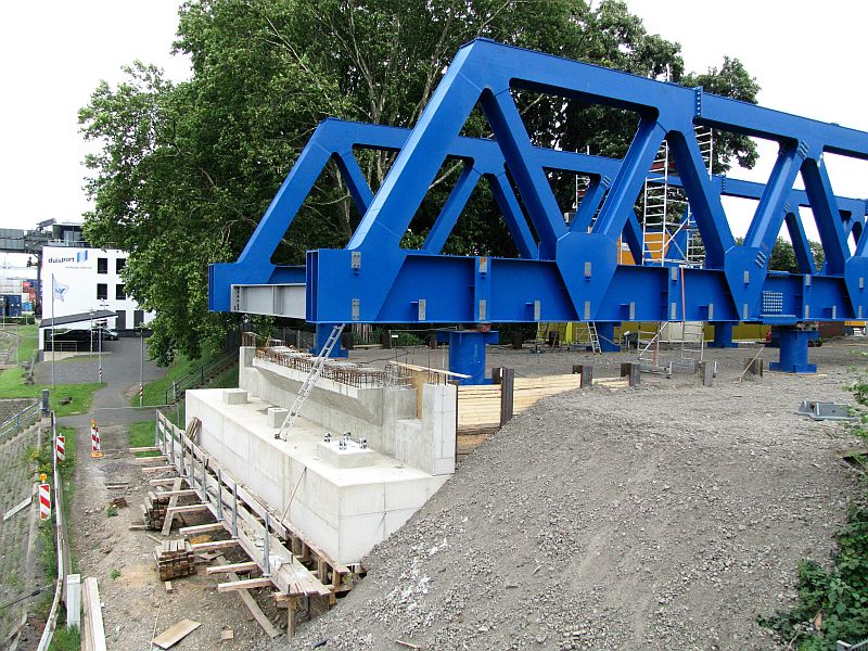 Blecki 4.132 Geschrieben 16. Juli 2011 Geschrieben 16. Juli 2011 Kleines Update: Mittlerweile ist die Brücke um einige Teile größer geworden und auch die Arbeiten an dem rechten Brückenlager gehen voran. Auf der linken Seite arbeitet ein Hitachi Zaxis 280 LC an der Uferböschung, an der das zweite Lager entstehen wird. Zitieren