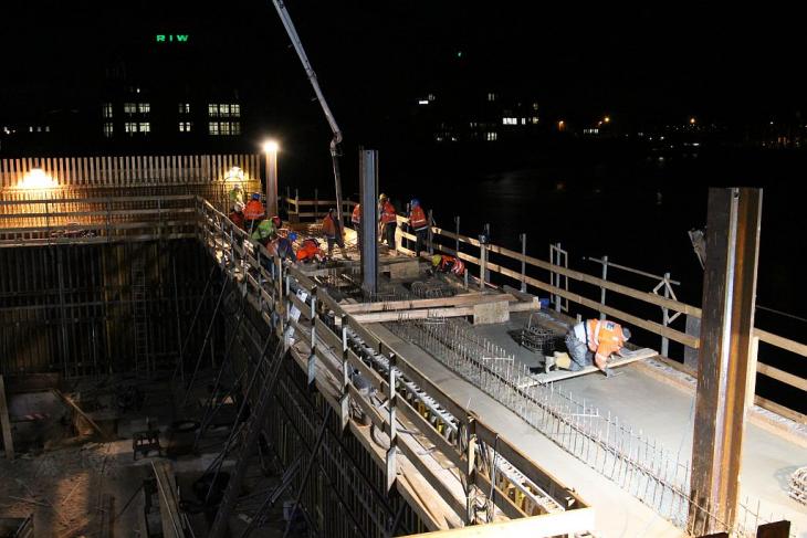 Blecki 4.133 Geschrieben 5. Februar 2014 Geschrieben 5. Februar 2014 Abendstimmung Die Arbeiten mit dem Anker-Bohrgerät sind beendet, in 14 Tagen soll das Großbohrgerät LB 28 wieder zur Baustelle kommen. Heute wurde betoniert, über 600 Kubikmeter, vom frührn Morgen bis in den Abend hinein. Zitieren