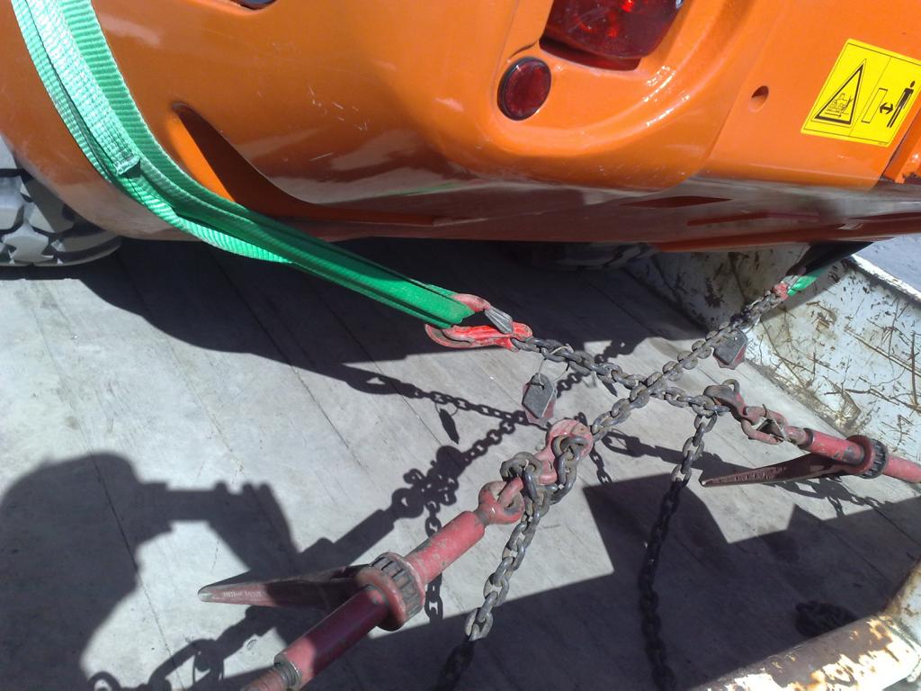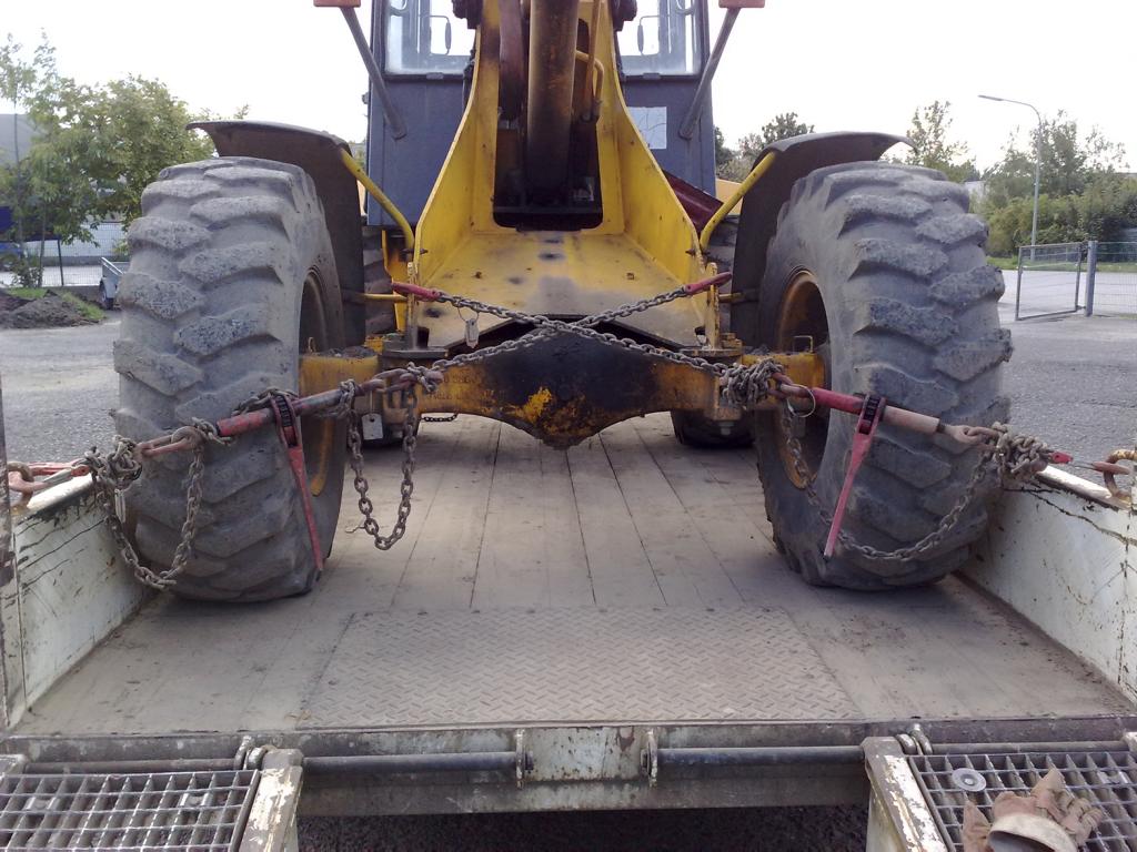 meisterLars 279 Geschrieben 20. September 2010 Geschrieben 20. September 2010 So, hier die versprochenen Bilder von kleinen Radladern:JCB 408, Sicherung nach vorne: Sicherung nach hinten, in Ermangelung an geeigneten Zurrpunkten hab ich mir das hier ausgedacht: ganz wichtig: Knickgelenk sperren. das Geschoß in seiner ganzen Pracht: Hitachi ZW75, Sicherung nach vorne: Zitieren