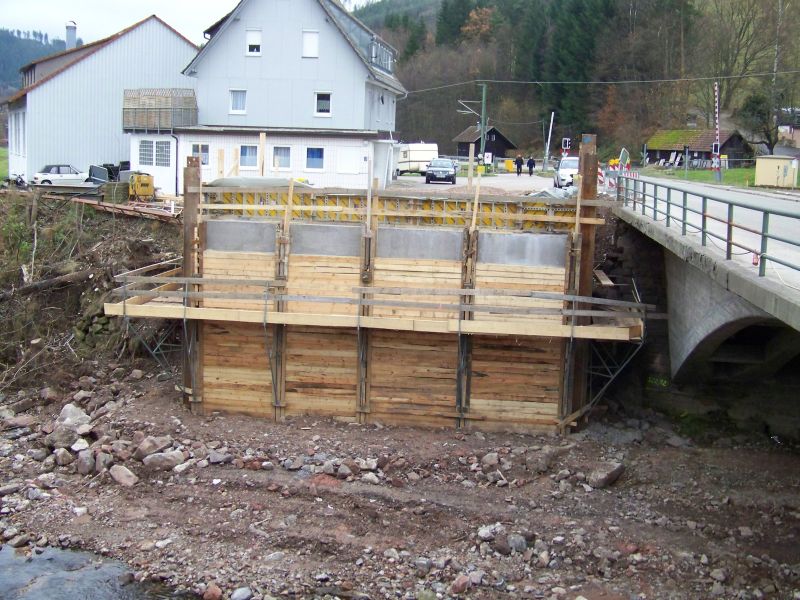 Cat5080 3 Geschrieben 2. Dezember 2010 Geschrieben 2. Dezember 2010 (bearbeitet) Hallo von Herbst 2008 bis Herbst 2009 wurde die Brücke über die Murg B464 abgebrochen und an gleicher Stelle neu gebaut.Durch das hohe Verkehrsaufkommen konnte die Bundestraße nicht gesperrt werden und eine Umleitung war hier durch die Örtlichen Gegebenheiten auch nicht möglich.Deshalb wurde neben der Brücke eine Behelfsbrücke errichtet die nach Fertigstellung der Brücke wieder demontiert wurde. bearbeitet 2. Dezember 2010 von Cat5080 Zitieren