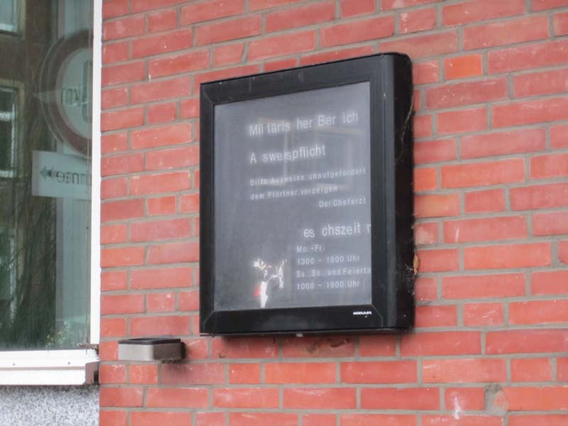 Holger_HAM 0 Geschrieben 12. Dezember 2010 Autor Geschrieben 12. Dezember 2010 Hier noch ein paar Aufnahmen von der Straßenseite:War das eine Trauerhalle (hat buntverglaste Scheiben im Eingang): So, nun gehts über einen kleinen Fußweg zur Rückseite des Gebäudes. Meine persönliche Premiere, bin da noch nie entlang gegangen.Recken, strecken und über die Hecke halten: Toller Zaun, da war es dann wieder gut nur die kleine Kamera dabei zu haben, da kann man glatt durchknipsen: Ganz schön groß der hintere Gebäudekomplex: Wie gut, dass da kein Laub mehr auf den Bäumen ist. Im Sommer hätte man schlechte Karten. Der Zaun bricht stellenweise auch schon ein Ist das hier das "Schwesternwohneim" gewesen? Mit den ganzen Ästen im Bild..., naja. Zitieren