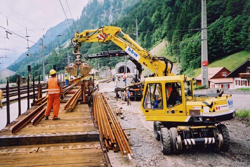 Transalpin 1 Geschrieben 24. Januar 2005 Geschrieben 24. Januar 2005 Leider gibt es in diesem Forum keine Rubrik, die sich mit dem Eisenbahnbau beschäftigt. Da es sich hierbei auch mit dem Bau von Infrastruktur für die Transportlogistik handelt, habe ich es in die Abteilung "Straßenbau" gestellt.Bei den folgenden Bildern handelt es sich um den Neubau des auf der Arlberg-Westrampe zwischen Klösterle und dem Bahnhof Langen gelegenen ca. 2200 m langen Blisadonatunnel der ÖBB.Die Fotos zeigen das Verziehen der 120 m langen Langschienen mittels ZW-Bagger (O&K), der von der österreichischen Firma "Bahnbau Wels" eingesetzt wird.... und runter von der Langschienengarnitur Zitieren