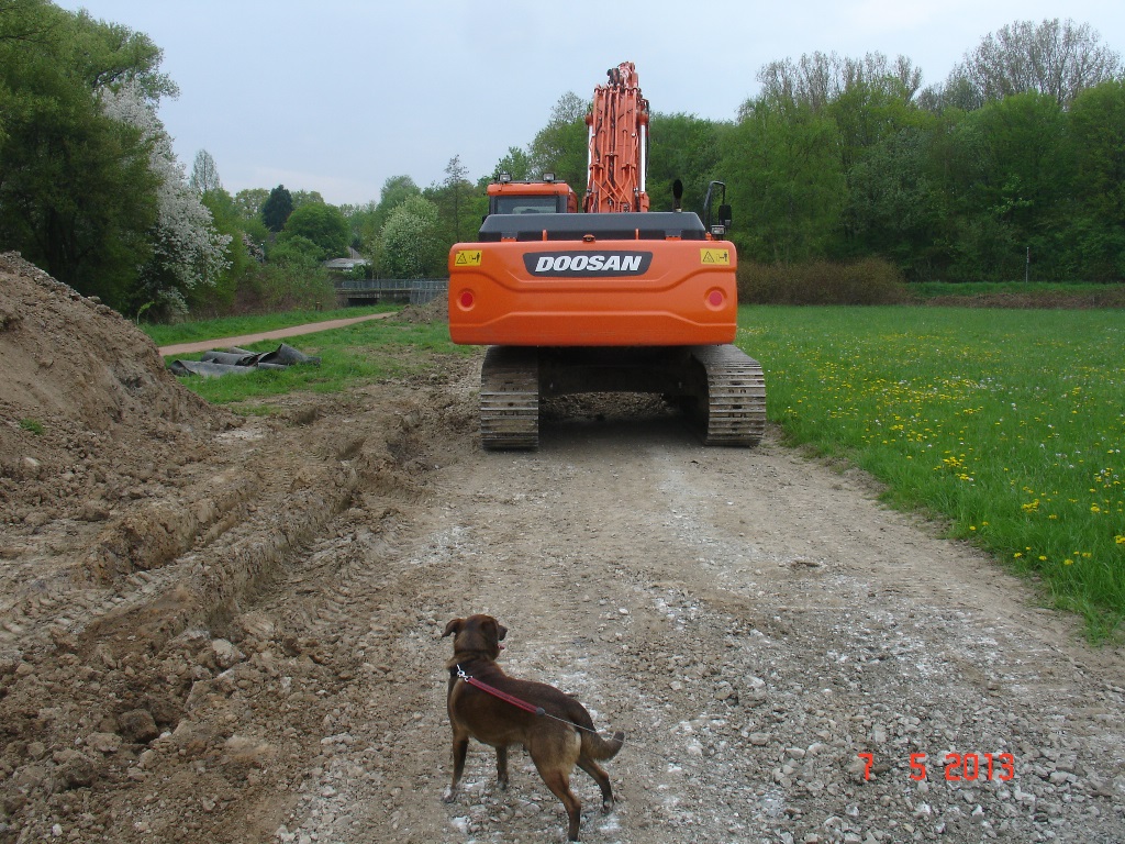 ZX250 104 Geschrieben 7. Mai 2013 Autor Geschrieben 7. Mai 2013 (bearbeitet) Unser Pflegehund "Max" inspiziert die Baustelle - inzwischen hat sich der Schlamm in "Beton" verwandelt.Zuerst wird die Baustraße "aufpoliert". bearbeitet 8. Mai 2013 von ZX250