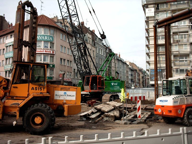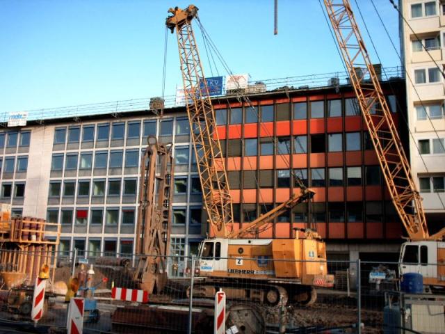 mo2351 463 Geschrieben 25. Dezember 2004 Geschrieben 25. Dezember 2004 Hab heute mal wieder ein paar Bilder gemacht.Am Hbf stehen zur Zeit zwei HS 852 von Bauer und Brückner sowie ein Drehbohrgerät von Wirth ( Brückner ). Am Heumarkt stehen ein Hs 855 , ein Hs 853 sowie ein BG auf Liebherr 944. Alle sind von Bilfinger Berger. Der Hs 883 von Züblin SPT und der Hs 853 von Wayss & Freytag Ingbau stehen jetzt am Clodwigplatz. Zitieren