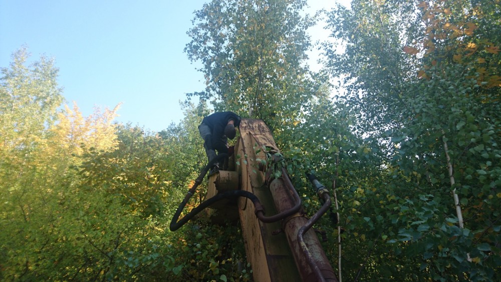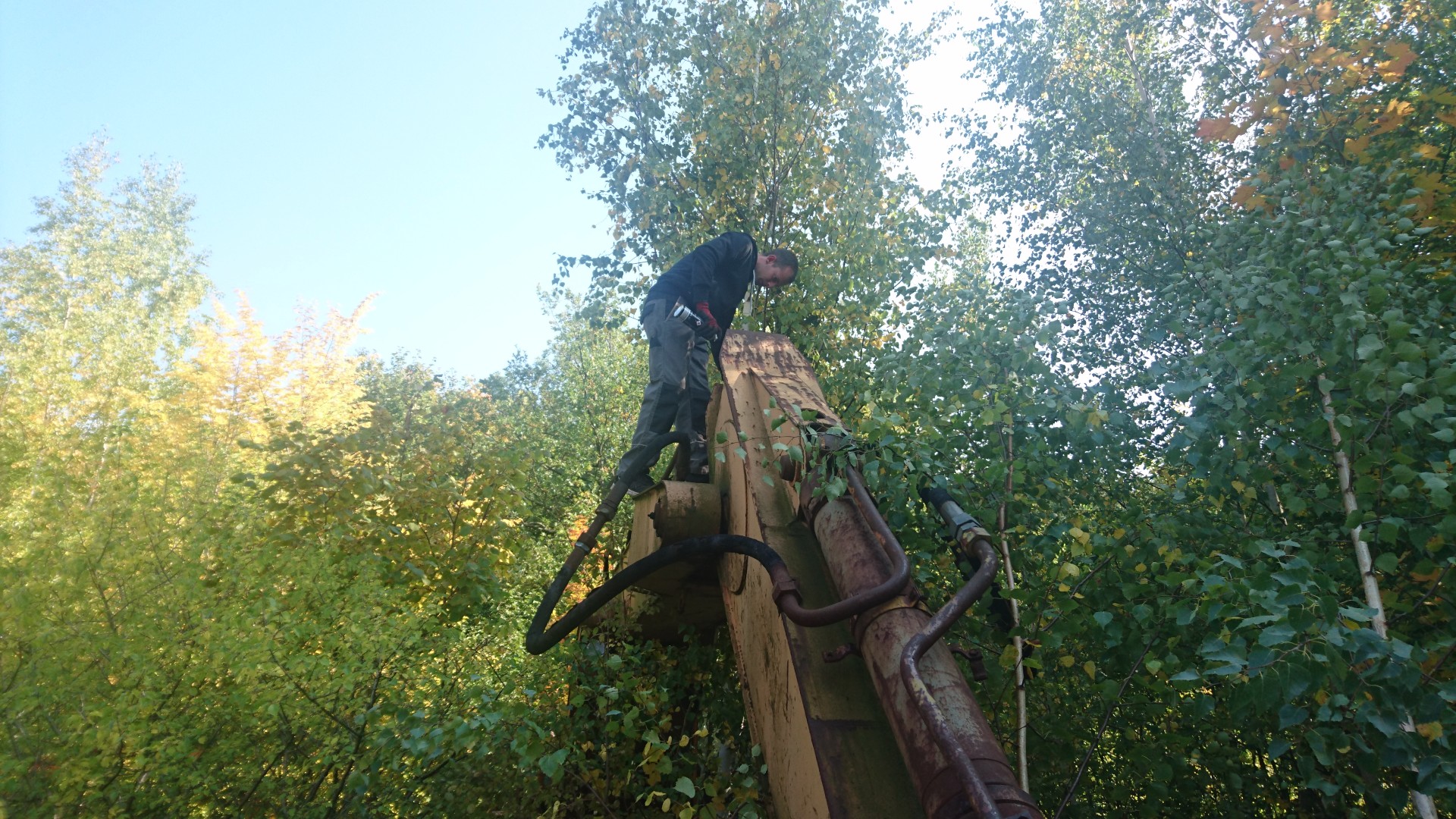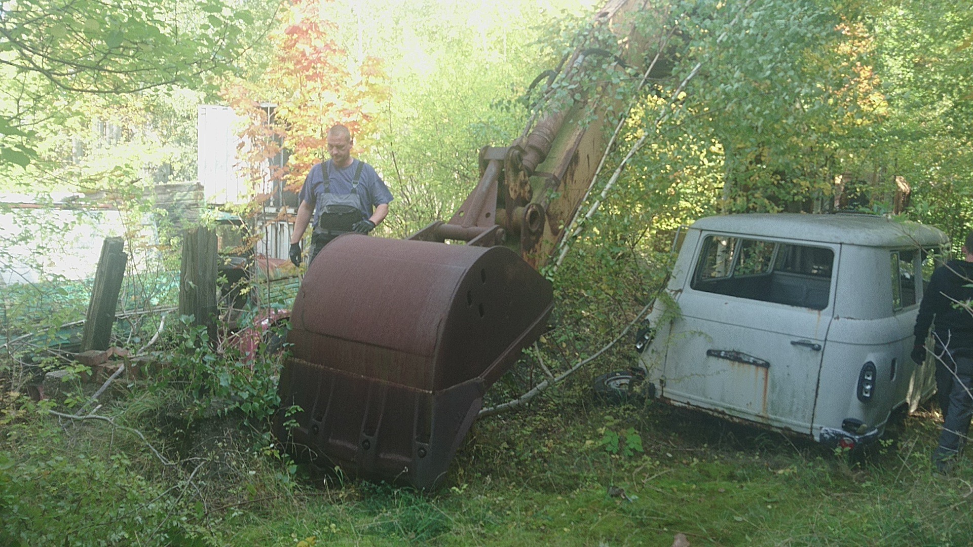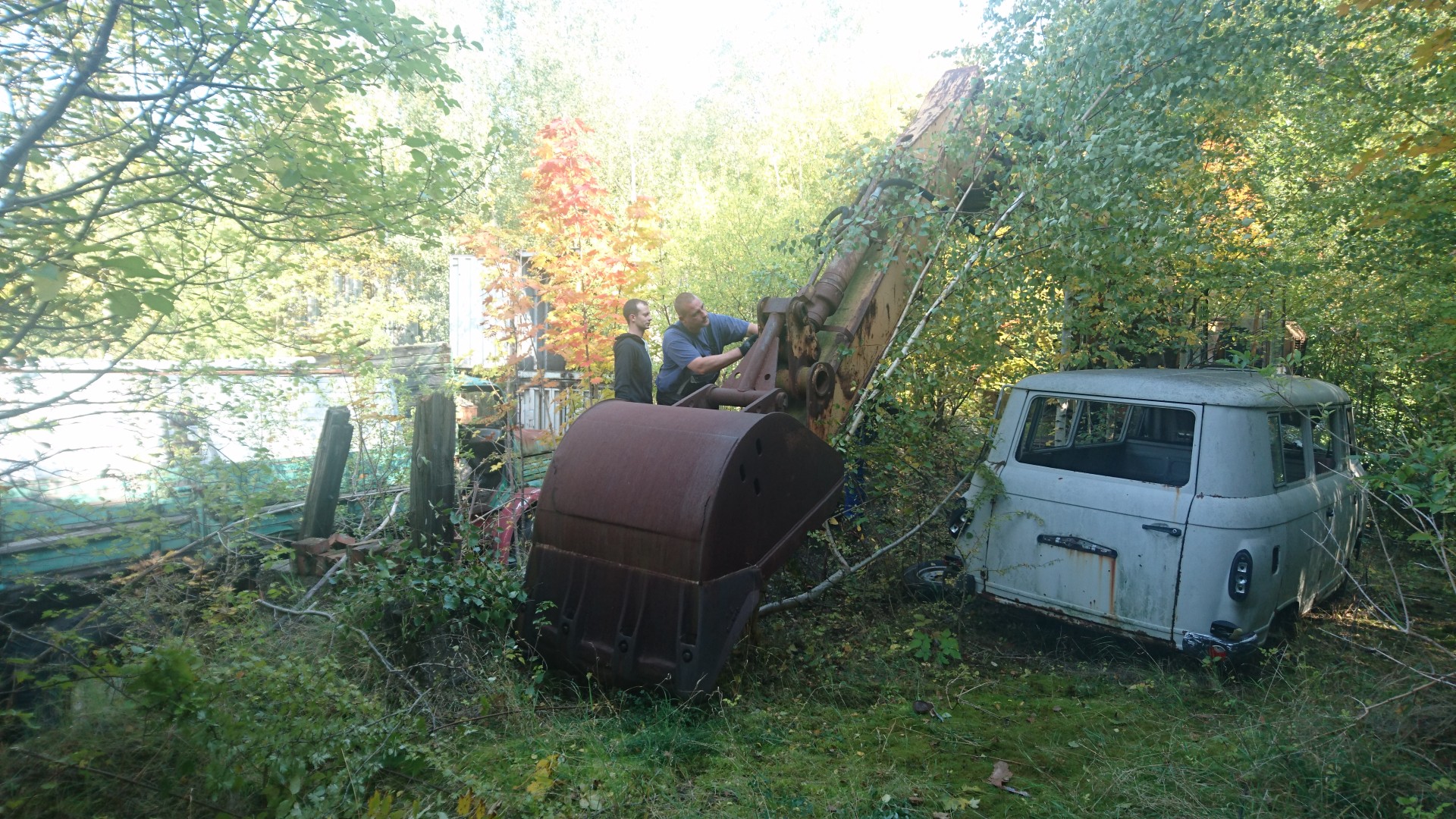 Peter&Nicole 312 Geschrieben 2. Dezember 2017 Geschrieben 2. Dezember 2017 Die nächste Aktion war dann das Freischneiden des Baggers, das Umsetzen des B 1000 und das Vorschieben der Raupe. Danach erfolgte das Verladefertigmachen, das heisst Abbauen des Löffels, Abbauen des Löffelstielzylinders am Löffelstiel und Einhängen des Löffelstiels in die Transportverankerungen am Hauptausleger. Das klingt alles sehr einfach und schnell zu erledigen - da aber alles dort 20 Jahre eingewachsen stand, wurde jede Kleinigkeit zum grösseren Problem.... Das hatten wir aber erfahrungsgemäss einkalkuliert und dadurch brauchten wir trotzdem für alles zusammen nur einen Tag. An dieser Stelle wollen wir uns hiermit nochmal für die Unterstützung des Eigentümers mit Stapler und LKW sowie auch bei unseren Freunden bedanken. Zitieren