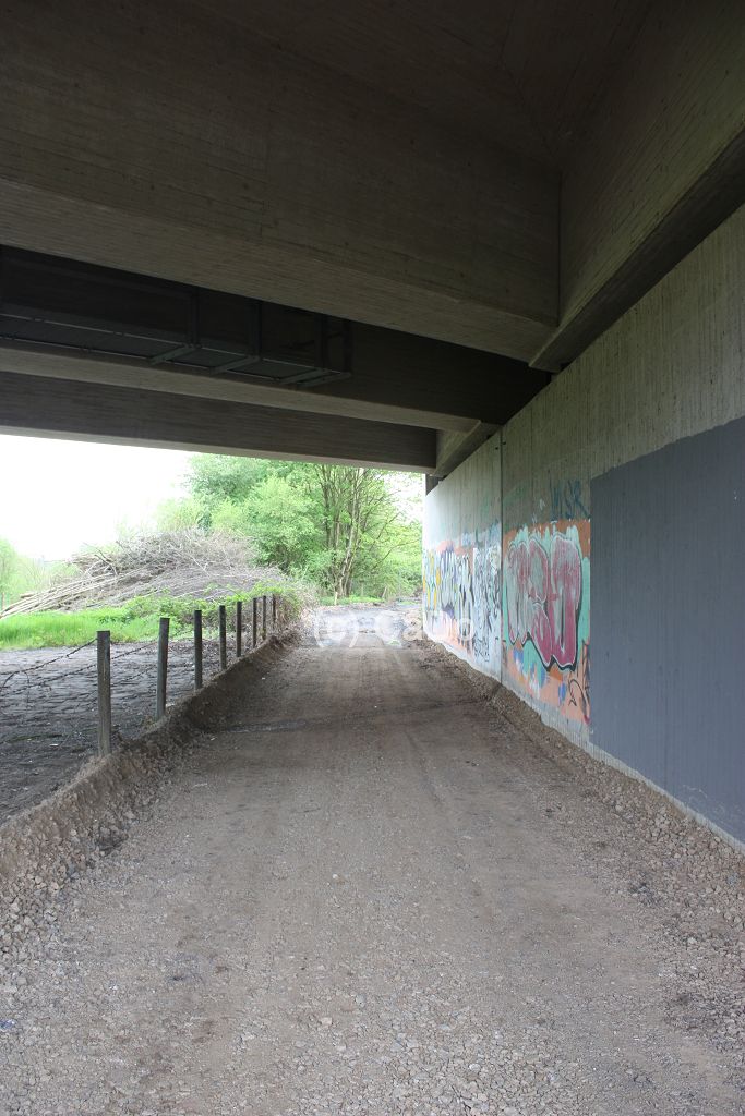 CaDo 445 Geschrieben 1. Mai 2012 Geschrieben 1. Mai 2012 Auf der Baustraße, Blick zurückHier wird wohl noch eine Begegnungsstelle für ein- und ausfahrende Fahrzeuge entstehen Weiter auf der Baustraße, wieder der Blick zurück, es wurden einige Rohre quer zur Straße verlegt und Wasser abzuführen und Tieren das queren der Straße zu ermöglichen Weiter, wieder der Blick zurück Unter der Brücke, Blick nach vorne, FR Schacht Hinter der Brücke macht die Straße eine Rechtskurve, auf dem Wall an der rechten Seite, mit den Bäumen, befindet sich die NSIX, Emscherallee Zitieren