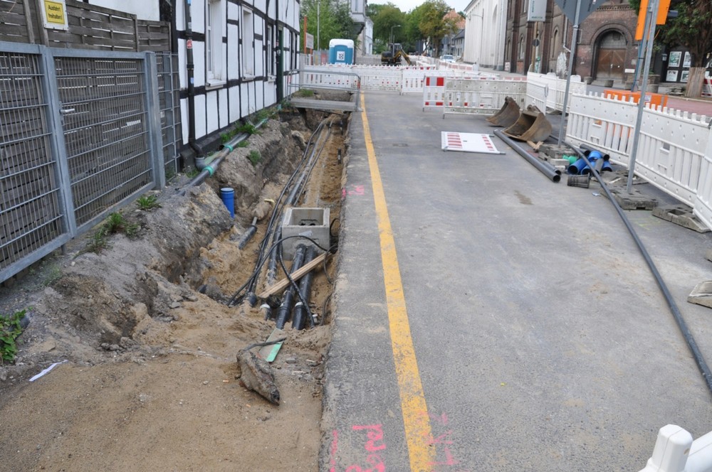 Mathias85 2.325 Geschrieben 28. Juni 2019 Autor Geschrieben 28. Juni 2019 In der darauffolgenden Woche hatte man an der Einmündung Stockumer Straße das Mastfundament wieder freigelegt (oder auch neu erstellt?). Im Bauabschnitt wurde hier zwar schon ein Mast gesetzt, dieser wurde später aber wieder entfernt und durch eine Straßenlaterne ersetzt... Zitieren