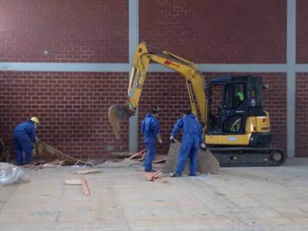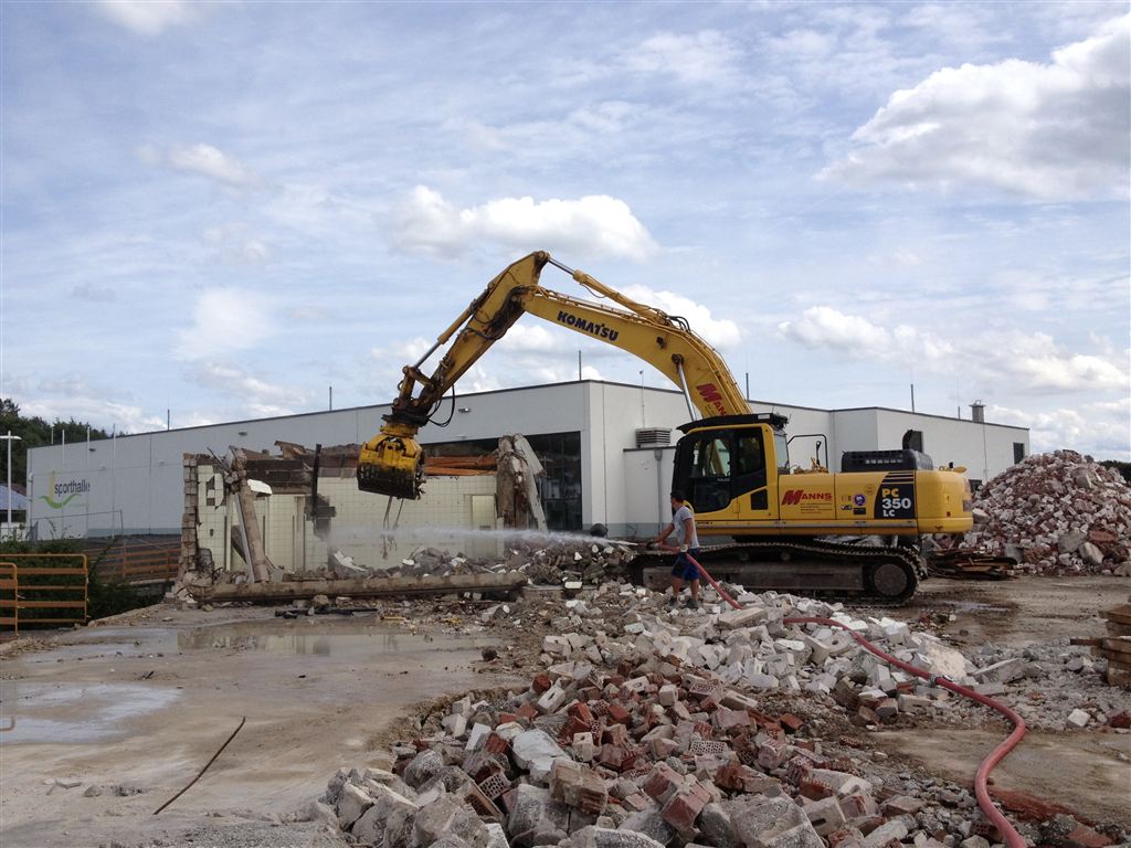 olli75 0 Geschrieben 19. Juli 2012 Geschrieben 19. Juli 2012 Hallo zusammen,anbei einige Bilder zum BV: Abbruch alte Turnhalle St. Katharinen.Momentan laufen die Entkernungsarbeiten auf Hochtouren.Ein kleiner Bereich des Anbaus wurde vorab abgebrochen, um mit Minibagger und Hubarbeitsbühne in die Sporthalle zu gelangen. Zitieren