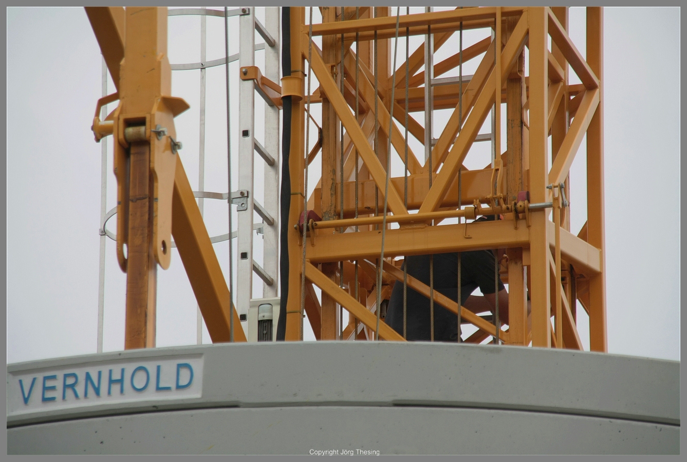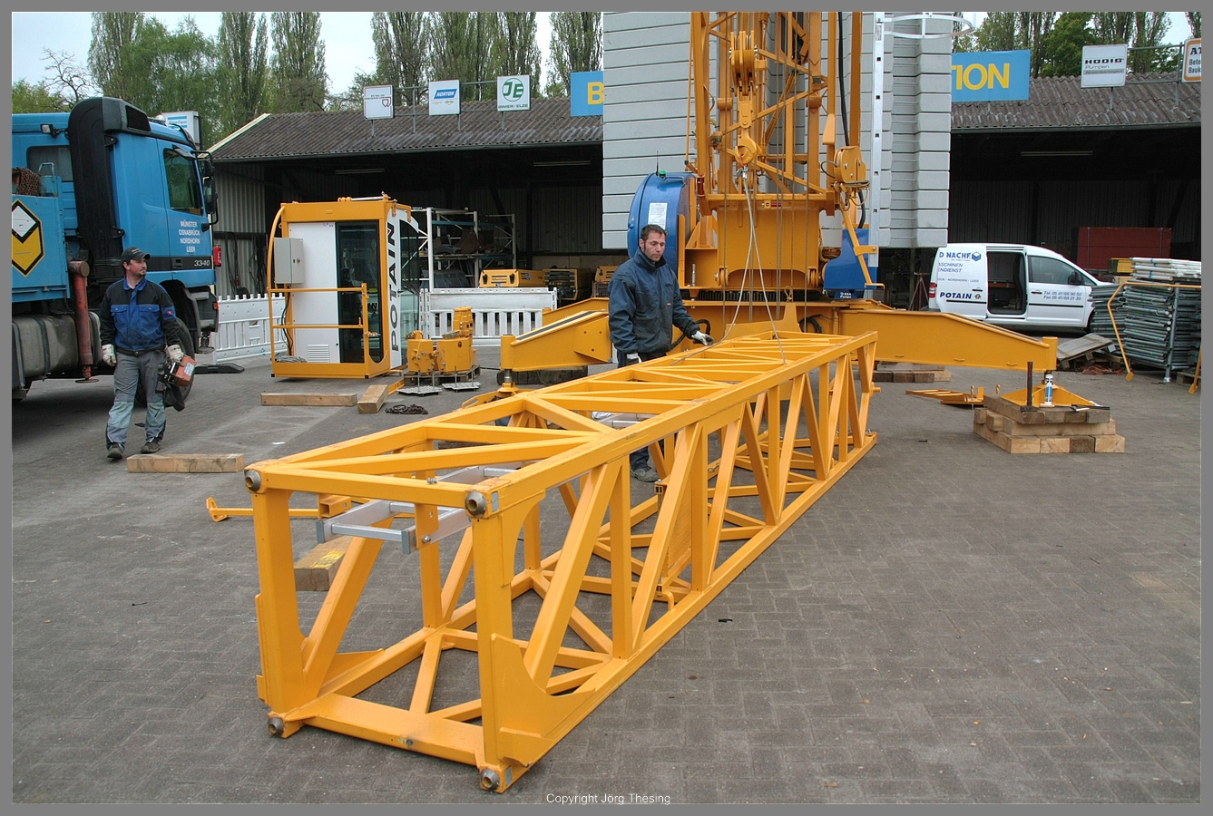 Jollyjumper 135 Geschrieben 7. Mai 2013 Autor Geschrieben 7. Mai 2013 ...und hier die Seite mit den Schrauben, die dann von unten nach oben eingeschraubt werden.Im Gegensatz zu den Liebherr K-Serie Kranen geht dieses System wesentlich schneller und auch einfacher, da ist Potain klar im Vorteil.Zudem entfällt hier auch das händeln der Abspannstangen, weil der Ausleger durch einen Flaschenzug verstellt und gehalten wird.Bei diesem Kran werden 2 Turmstücke a´6 Meter eingeklettert, möglich wäre auch ein drittes Turmstück, dieses verbleibt dann allerdings aus Stabilitätsgründen 3 Meter im Grundturm. Zitieren