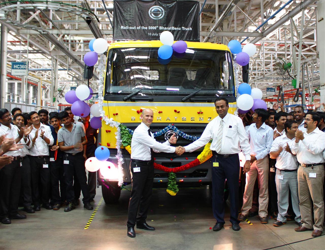 Bauforum24 1.491 Geschrieben 16. Juli 2013 Geschrieben 16. Juli 2013 Stuttgart/Chennai, Indien ? Daimler India Commercial Vehicles (DICV), eine 100%-ige Tochtergesellschaft der Daimler AG, feiert das erste Produktionsjubiläum: Der 5.000ste Lkw der Marke BharatBenz ist in Chennai vom Band gerollt. Der Jubiläumstruck ist ein Schwer-Lkw vom Typ BharatBenz 2523C mit 25 Tonnen zulässigem Gesamtgewicht und 230 PS für den Baustellenverkehr. Mit dieser Baureihe läutete DICV im Juni 2012 die Serienproduktion von BharatBenz Lkw ein. Bauforum24 Artikel (20.02.2013): Daimler verkauft nun auch mittelschwere BharatBenz Lkw in Indien ?Vom Produktionsanlauf über die Markteinführung unserer mittelschweren und schweren Modelle bis hin zu ersten Branchenauszeichnungen: Wir haben viel erreicht", sagt Marc Llistosella, Geschäftsführer und CEO von DICV. ?Unser Blick richtet sich aber weiter nach vorn. Wir werden unser Händlernetz wie auch unser Produktportfolio konsequent ausbauen und bis 2014 insgesamt 17 Modelle unter der Marke BharatBenz anbieten." Sven Gräble, Vice President Operations & Manufacturing Engineering, und P. S. Sriram, General Manager Production, freuen sich gemeinsam mit Kolleginnen und Kollegen über den 5.000sten BharatBenz. Beim Jubiläumstruck handelt es sich um einen Schwer-Lkw vom Typ BharatBenz 2523C. Bereits verkauft werden die mittelschweren Trucks in den Gewichtsklassen 9 bis 12 Tonnen und die schweren Lkw von 25 bis 31 Tonnen. Damit haben Kunden die Wahl aus neun verschiedenen Modellen.Daimler Trucks Asia bündelt Stärken von MFTBC und DICVNeben BharatBenz Lkw für Indien produziert DICV in Chennai seit Mai 2013 auch FUSO Lkw für ausgewählte Exportmärkte in Asien und Afrika. Unter dem Dach von Daimler Trucks Asia arbeiten die beiden Tochtergesellschaften, Mitsubishi Fuso Truck and Bus Corporation (MFTBC) und Daimler India Commercial Vehicles (DICV), damit Hand in Hand zusammen.Dr. Albert Kirchmann, Head of Daimler Trucks Asia und MFTBC President & CEO: ?Mit vereinten Kräften arbeiten wir daran, unsere Präsenz in den Wachstumsmärkten in Asien und Afrika zu stärken und weitere Absatzpotenziale auszuschöpfen. Unsere Hauptproduktionswerke in Kawasaki, Japan, und Chennai, Indien, spielen eine Schlüsselrolle bei unserer zukunftsweisenden Wachstumsstrategie." Weitere Informationen: Daimler India Commercial Vehicles Webseite (© Foto: Daimler) Mehr News aus der Baubranche... Zitieren