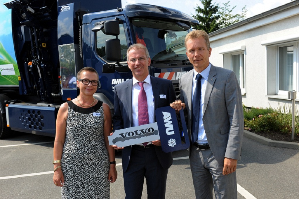 Bauforum24 1.491 Geschrieben 19. August 2013 Geschrieben 19. August 2013 Das Volvo Group Truck Center in Wildau hat das sparsamste, sauberste und leiseste Müllsammelfahrzeug seiner Klasse in Europa an die AWU-Abfallwirtschafts-Union Oberhavel in Velten bei Berlin ausgeliefert. Der 26-Tonner basiert auf einem Volvo FE Hybrid-Fahrgestell und arbeitet mit einem vollelektrischen Müllpresswerk des finnischen Herstellers NTM. Das elektrifizierte Entsorgungsfahrzeug ist Teil des ?Internationalen Schaufenster Elektromobilität Berlin-Brandenburg" der Bundesregierung und soll bis Ende 2015 Erkenntnisse über die technische Eignung und den wirtschaftlichen Betrieb liefern. Bauforum24 TV Video: LKW & Baumaschinenproduktion - VDBUM?Wir vom Volvo Group Truck Center in Wildau sind sehr stolz darauf, mit unserem Volvo FE Hybrid-Fahrgestell das AWU-Projekt im Rahmen des ?Internationalen Schaufensters Elektromobilität' in Berlin-Brandenburg maßgeblich unterstützen und begleiten zu können. Von unseren technisch ausgereiften Hybrid-Lkw profitiert die ganze Gesellschaft: die Umwelt dank geringerer Emissionen, die Bürger, weil der Lkw viel leiser unterwegs ist, und nicht zuletzt unsere Kunden aufgrund des deutlich geringeren Kraftstoffverbrauchs", sagt Uwe Hellmich, Verkaufsleiter des Volvo Group Truck Center in Wildau, anlässlich der offiziellen Fahrzeugübergabe vor hochrangigen Landespolitikern und geladenen Gästen in Velten. Der Seitenlader Volvo FE Hybrid mit vollelektrischem Müllpresswerk arbeitet besonders sparsam, sauber und leise.?Volvo Trucks ist der einzige Lkw-Hersteller, der einen Dreiachser für 26 Tonnen mit serienreifem Hybrid-Antriebsstrang für unser umweltfreundliches Müllfahrzeug liefern konnte. Unsere Erwartungen sind hoch. Wir hoffen, mit dem geräuscharmen Antrieb und dem elektrisch betriebenen Aufbau den Einsatz zukünftig noch stärker in Zeiten mit geringem Verkehrsaufkommen verschieben zu können", begründet Annette Fürstenberg das Engagement der AWU für das Projekt Elektromobilität. Die Fuhrparkleiterin der Abfallwirtschafts-Union in Velten koordiniert den Einsatz von insgesamt 15 Müllsammelfahrzeugen. Etwa die Hälfte davon sind Seitenlader, die im Ein-Mann-Betrieb unterwegs sind. Auch der Neuzugang ist ein Seitenlader und bislang der einzige in Europa mit vollelektrischem Aufbau. ?Knapp drei Jahre haben wir jetzt Zeit, im Feldversuch die Wirtschaftlichkeit des Elektrofahrzeugs im Müllsammelbetrieb nachzuweisen. Wir versprechen uns davon Kraftstoffeinsparungen von mindestens 25 Prozent", betont Annette Fürstenberg. Der Seitenlader mit Parallel-Hybridantrieb kann im Einsatz bis zu 30 Prozent Kraftstoff sparen, wenn anstelle des motorgetriebenen ein batteriebetriebener Müllsammelaufbau zum Einsatz kommt. Allein der Volvo FE Hybrid senkt den Dieselkonsum im Stop-and-Go-Verkehr mit niedrigen Geschwindigkeiten und vielen Haltepunkten um bis zu 20 Prozent. Denn beim Anfahren und bei geringem Tempo ist der Müllsammler rein elektrisch unterwegs und verbraucht keinen Kraftstoff. Die Kombination aus Diesel- und Elektromotor in Verbindung mit der intelligenten Steuerung namens Powertrain Management Unit (PMU) macht's möglich. Letztere steuert automatisch die Gangwechsel, das Zuschalten der Antriebsquellen und das Laden der Batterie. Die PMU sorgt dafür, dass das Beschleunigen aus dem Stand bis 20 km/h allein dem 120 kW starken Elektromotor vorbehalten bleibt. Erst bei höheren Geschwindigkeiten schaltet sich der 7,2-Liter-Dieselmotor mit Euro-5-Abgasnorm zu. Beide Motoren arbeiten dann parallel und treiben den Dreiachser gemeinsam an. Bis zu zwei Kilometer weit kann der Müllwagen mit einer Batterieladung rein elektrisch unterwegs sein. Der Energiespeicher und die Steuereinheit für den elektrischen Antrieb des Müllaufbaus befinden sich geschützt in einem Gehäuse hinter dem Fahrerhaus. Der Permanent-Magnetmotor sitzt zwischen Dieseltriebwerk und Getriebe. Beide Antriebsquellen leiten ihre Kraft über dasselbe automatisierte Zwölfganggetriebe Volvo I-Shift an die Räder weiter. Stoppt der Müllwagen, schaltet der 340 PS starke Sechszylinder-Dieselmotor automatisch ab, um unnötigen Leerlaufbetrieb zu vermeiden. Beim Bremsen fungiert der Elektromotor als Generator, der mit der Bremsenergie die Lithium-Ionen-Batterien für den Antrieb wieder auflädt.Während die kleinen, schnell aufladbaren 600-Volt-Hochleistungsbatterien für den Hybridantrieb nicht an die Ladesäule müssen, braucht das große Batteriepack für den elektrischen Antrieb des NTM-Aufbaus regelmäßig Kraftstrom aus der Steckdose. Die Energiespeicher mit eigenem Batteriemanagement sitzen als Teil des Aufbaus platzsparend hinter dem Fahrerhaus des Rechtslenkers in einem wettergeschützten Gehäuse und schränken das Aufbauvolumen nur wenig ein. Sie verfügen über eine Heizung und Kühlung, um sowohl an sehr heißen als auch sehr kalten Tagen durchzuhalten. Die kompakten Lithium-Ionen-Akkus liefern den Strom für einen Elektromotor, der eine Hydraulikpumpe für die Aufbauarbeit wie Schütten und Pressen antreibt. Annette Fürstenberg, Fuhrparkleiterin der Abfallwirtschafts-Union in Velten, koordiniert den Einsatz von insgesamt 15 Müllsammelfahrzeugen und denkt bei dem elektrisch betriebenen Lkw über die Ausdehnung der Einsatzzeiten nach.Tests haben ergeben, dass die Aufbau-Akkus selbst nach 2.500 Ladevorgängen immer noch eine Kapazität von über 80 Prozent aufweisen. Die Energiespeicher hat der finnische Aufbauhersteller Närpes Trä & Metall (NTM) so ausgelegt, dass sie über 18 Stunden im Schütt- und Pressbetrieb durchhalten, bevor sie wieder für zirka acht Stunden an die Ladesäule müssen. Dadurch lässt sich das Hybrid-Sammelfahrzeug selbst im Zwei-Schicht-System einsetzen. Davon macht die AWU längst Gebrauch. Seit 2010 rollt der komplette Fuhrpark im Zwei-Schicht-Betrieb und ist in der Regel fünf Tage in der Woche von 6:00 bis 21:30 Uhr im Einsatz. Dafür gibt es Ausnahmegenehmigungen der 