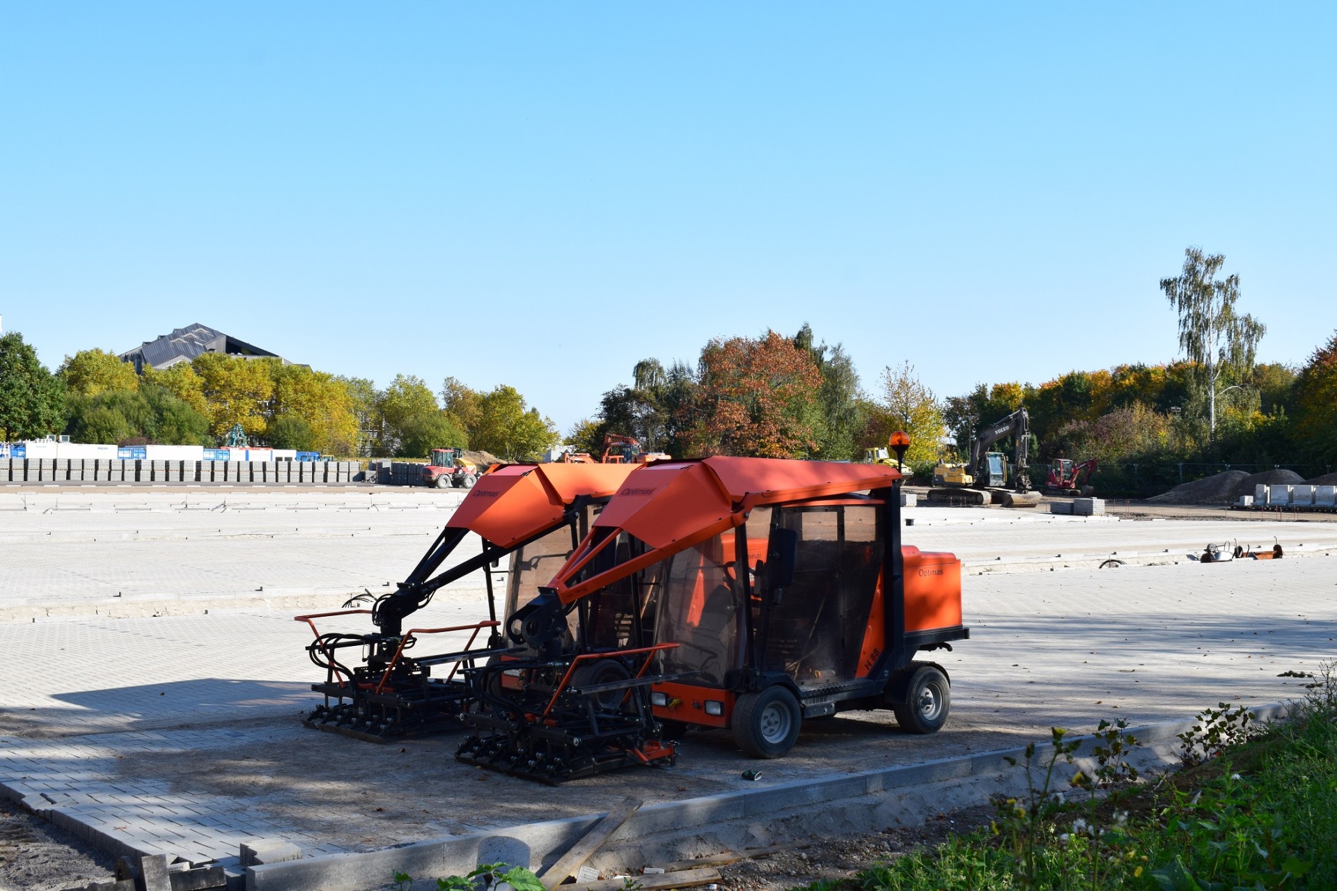 Bauforum24 1.481 Geschrieben 16. Januar 2014 Geschrieben 16. Januar 2014 Frank Engemann, Geschäftsführer der Firma W. Uder OhG aus Diepholz, pflastert zurzeit einige tausend Quadratmeter des Betriebshofes eines Dienstleistungsunternehmens. Für diesen Einsatz setzt er auf ein Dreiergespann, bestehend aus der Optimas Pflastermaschine H88-Limited Edition, dem Optimas PlanMatic und einem Radlader. Bauforum24 präsentiert: Video: Optimas Pflasterverlegemaschine H88 als "Limited Edition"Natürlich müssen zuerst die entsprechende Tragschicht und der Unterbau eingebaut und vor allen Dingen hervorragend planiert sein. Hier kommt das Optimas PlanMatic Gerät ins Spiel: Eine vollautomatische Abziehbohle, die als Anbaugerät an Radlader oder andere Baumaschinen angebaut werden kann. Das Optimas PlanMatic ist 2 m breit (Standard), hat einen Zylinderhub von 280 mm und die Verbindung zur Hydraulik des Radladers wird über eine Steckverbindung innerhalb weniger Sekunden hergestellt. Alle notwendigen Systemkomponenten wie Laser, Querneigung und Ultraschall sind kombinierbar. Sobald dies geschehen ist, kann sofort mit einer Genauigkeit von +/- 0,4 cm gearbeitet werden. Man braucht keine zusätzlichen Hilfsmittel wie zum Beispiel Niveauschienen. Ein weiterer Vorteil: Mit dem Optimas PlanMatic lässt sich zusätzlich zum Vorwärtsgang auch im Rückwärtsgang arbeiten. Das Optimas PlanMatic Gerät (im Vordergrund) kann zum Erstellen eines Planums an einen Radlader angebaut werden.Sobald das PlanMatic Gerät nicht mehr benötigt wird, kann der Radlader zum Beispiel mit der Palettengabel die Paletten mit den zu verlegenden Pflastersteinen an die optimale Stelle liefern. Im nächsten Schritt kommt nun die Optimas H88-Limited Edition Pflasterverlegemaschine ins Spiel. Ausgerüstet mit dem Optimas 6-Arm-Greifer nimmt sie Steinlage um Steinlage auf und baut sie entsprechend der Vorgaben ein. Die Optimas H88-Limited Edition im Einsatz.Die Optimas H88 sieht nicht aus wie ein Schwergewicht, aber ihr 25 kW/34 PS starker Motor entwickelt genügend Kraft, damit die Hydraulik auch Schwerstgewichte bis zu 700 kg heben und bewegen kann. Das Wichtige ist die Sicherheit, mit der dies geschieht. ?Die Optimas H88 arbeitet schnell und der Pflastergreifer hat eine unglaubliche Greifsicherheit", sagt Frank Engemann. Jegliches Nacharbeiten soll auf diese Weise entfallen. Optimas bewirbt die H88 dank ihrer Einzelradaufhängung mit ausgezeichneter Standsicherheit. Außerdem soll die Drehschemel-Knicklenkung dafür sorgen, dass keine seitlichen Schubkräfte bei Kurvenfahrten entstehen. Laut Hersteller kann sich das Pflaster so beim Befahren weder verschieben noch verkanten. Weiterhin wird die Optimas H 88-Limited auf allen vier Rädern angetrieben. Dies erhöht die Fahrsicherheit und schont den Untergrund. Weitere Informationen: Optimas Webseite (© Fotos: Optimas) Mehr News aus der Baubranche... Bauforum24 Artikel (11.02.2013): Optimas Pflastergreifer Multi6 und Easy1 - Kein Stein geht verloren Zitieren