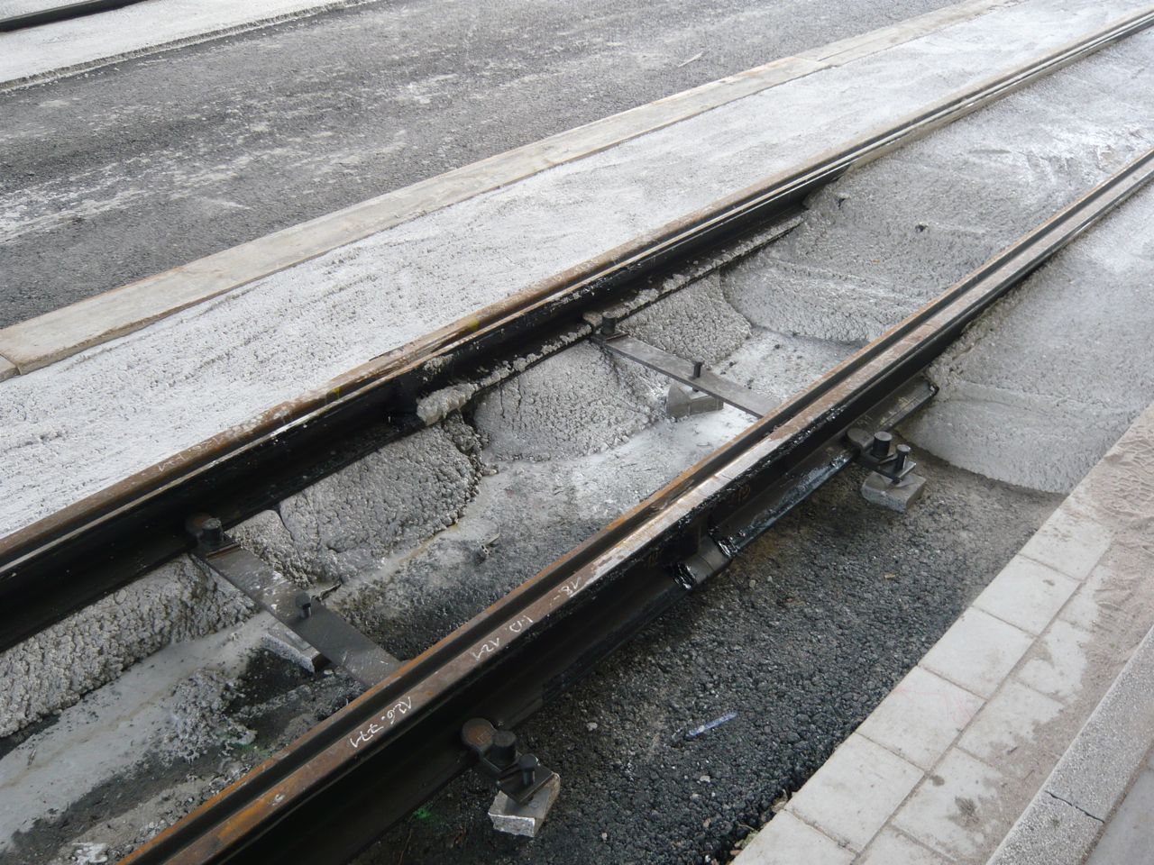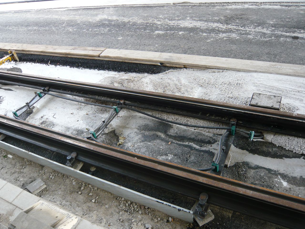 bigmama 11 Geschrieben 29. Juli 2014 Autor Geschrieben 29. Juli 2014 An dieser Stelle konnte ich zuletzt die Ausrichtung der Schienenstösse vor dem Schweißen beobachten. Nun ist die Verbindung fertig und die Isolierung gegen die Fahrbahn hergestellt worden. Das hier wird vermutlich die "Induktionsschleife" für die Ampelanlage an der in Fahrtrichtung folgenden Kreuzung sein. Diese Kunststoffprofile lagen ein paar Meter weiter. Verwendung finden sie.. ..an den verschweissten Schienenstössen zur Komplettierung der Ummantelung. ... Zitieren