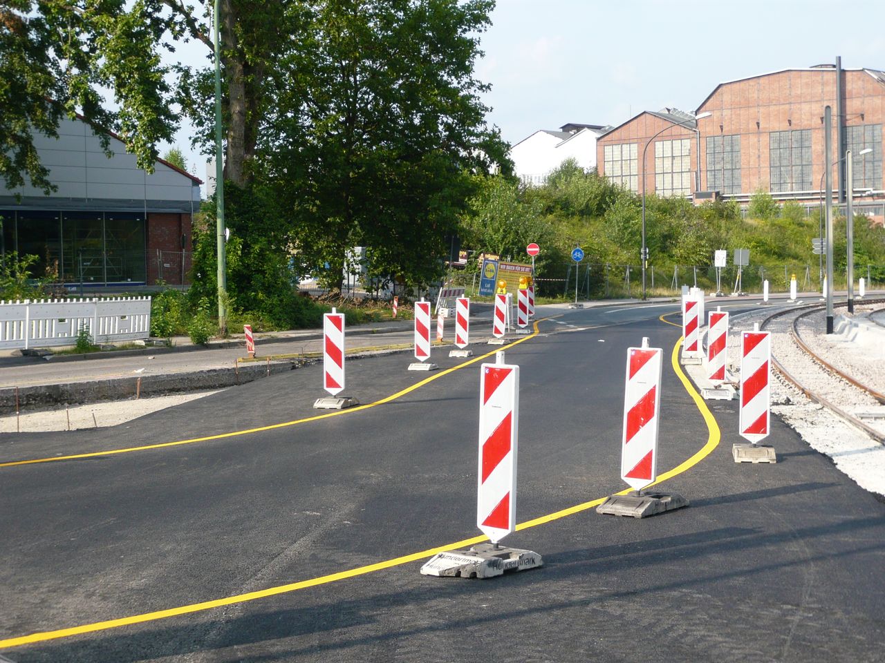 bigmama 11 Geschrieben 29. Juli 2014 Autor Geschrieben 29. Juli 2014 Rechts im Hintergrund gut zu erkennen ist die angesprochene Fläche, die schraffiert im Plan eingezeichnet ist. Ich kann aber schonmal vorsichtig andeuten, dass bereits neuere Bilder aus diesem Bereich existieren. Die letzte Lücke im Gleis. Lediglich im Bereich Martin-Luther-Strasse fehlen noch nennenswerte Abschnitte. Aus der Nähe ... Zitieren