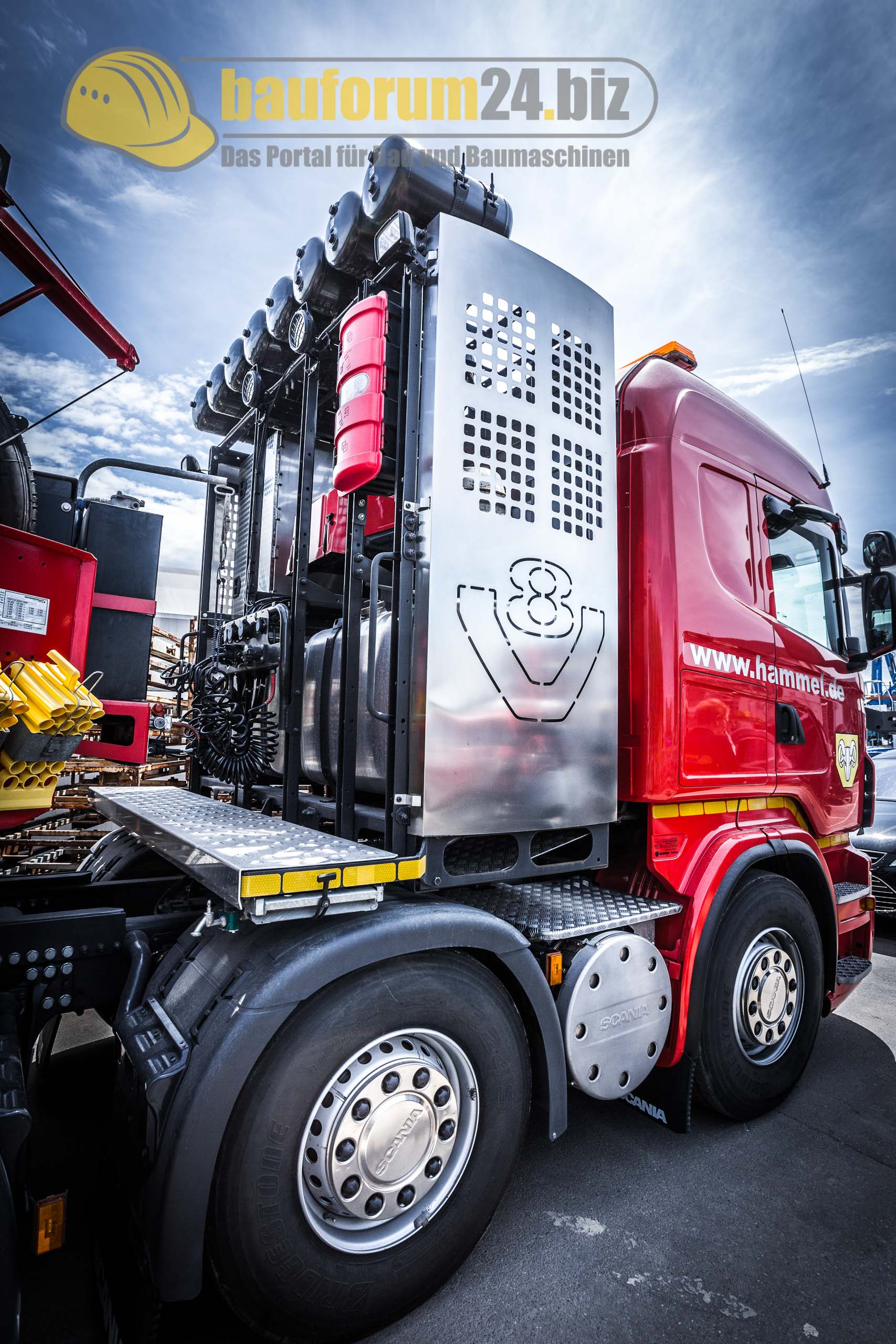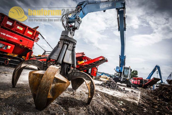 Bauforum24 1.490 Geschrieben 31. Juli 2014 Geschrieben 31. Juli 2014 Bad Schönborn. Auf der 125-Jahr-Feier von Terex Fuchs zeigte Hammel Recyclingtechnik eine Auswahl seiner Maschinen bei der Verwertung von Altfahrzeugen. Zwei Hammel-Schredder und ein Vorbrecher mit Steinert Elektromagnettrommel waren auf dem Demogelände live im Einsatz zu sehen. Bauforum24 TV präsentiert: Video: 125 Jahre Terex Fuchs mit Hammel Recyclingmaschinen Das Demogelände auf der 125-Jahr-Feier in Bad Schönborn: Terex Fuchs MHL 385 mit Hammel MMS 150 DK (Mitte) und VB 850 DKHammel mit Hauptstandort in Bad Salzungen (Thüringen) ist Spezialist für Zerkleinerungstechnik und Aufbereitungslösungen. Gestartet im Jahr 1996, beschäftigt das Unternehmen inzwischen über 600 Mitarbeiter. Zu seinen langjährigen Partnern zählt Hammel unter anderem Terex Fuchs. So schließt sich dann auch der Kreis zum gemeinsamen Auftritt auf der Jubiläumsfeier in Bad Schönborn: Die beiden Terex Fuchs Umschlagmaschinen MHL 385 D und MHL 360 F sorgten für die Beschickung zweier Hammel-Vorbrecher vom Typ VB 1500 DK und VB 850 DK. Ein großartiges Team: Terex Fuchs MHL 360 F mit Hammel VB 1500 DK Zum aktuellen Hammel-Programm gehören Vorbrecher, Nachzerkleinerer und Siebanlagen. Besonders beeindruckend sind die Hammel-Vorbrecher mit dem patentierten Zwei-Wellen-Prinzip. Die Werkzeugwellen mit ihren aggressiven Reißhaken und Klingen ziehen das aufgegebene Material direkt ein und zerkleinern es gnadenlos: Ob Altholz, Wurzelstöcke oder Eisenbahnschwellen, ob Altreifen, Motorblöcke, komplette Altfahrzeuge ... Hammel-Vorbrecher kriegen (fast) alles klein. Heraus kommt handlicher Schrott, der weiter sortiert werden kann. Je nach Schredder sind Endkorngrößen zwischen 150 und 400 mm möglich. Ähnlichkeit rein zufällig? Das Hammel-Logo hat frappierende Ähnlichkeit mit dem der Fahrzeugmarke Dodge RamDer im Jahre 2012 vorgestellte Hammel VB 1500 DK ist laut Eigenbezeichnung the world's largest mobile shredder. Unter den aktuell elf Hammel-Vorbrechern ist er der König im Stall. Ausgestattet ist der 60 Tonnen schwere Zerkleinerer mit einem doppelten dieselhydraulischen Antrieb: Die zwei Cat C18-Motoren leisten zusammen 1500 PS, das maximale Drehmomement liegt bei 1.000.000 (in Worten: eine Million) Newtonmeter. Wenn die beiden Wellen rotieren, sollte man also besser nicht in der Nähe sein. Die beiden Cat C18 Motoren des Hammel VB 1500 DK erfüllen die Tier 4 Interim-Abgasbestimmungen SPS Steuerung für die VB 1500 DK. Wahlweise lässt sich der Betrieb per Hand oder Automatik einschalten Die Abwurfhöhe des bis zu 400 mm großen Endkorns beträgt 4,3 Meter bei einem 30 Grad-WinkelYouTube-Video: Hammel VB 1500 DK zerkleinert Altfahrzeuge Terex Fuchs MHL 385 D mit Hammel VB 850 DK (links), MMS 150 DK und VB 1500 DK (rechts) Im Vergleich zu seinem großen Bruder ist der Hammel VB 850 DK deutlich kleiner. Die Endkorngröße liegt bei maximal 350 mm Die Durchsatzleistung der VB 850 DK beträgt bis zu 100 Tonnen pro Stunde YouTube-Video: Hammel VB 850 DK bei der Zerkleinerung von AltholzNachdem das Aufgabematerial auf eine Korngröße von weniger als 300 mm zerkleinert wurde, wird es weiter zur Hammel MMS 150 DK transportert. Die mobile Metallsortierung übernimmt die Trennung von Eisenmetallteilen, Nichteisenmetall- und Nichtmetallteilen. Das vorzerkleinerte Material wird zunächst auf dem Vibrofingersieb abgesiebt. Durch die Vibration fällt die Feinfraktion (< 150 mm) durch das Sieb auf die Vibrorinne. Das Überkorn (> 150 mm) wird über ein Austragsband abgeführt und kann dann dem Vorbrecher erneut zugeführt werden. Die Durchsatzleistung beträgt ca. 30 bis 40 Tonnen pro Stunde. Das Einsatzgewicht der Hammel MMS 150 DK beträgt 18 bis 19 Tonnen. Im Gegensatz zu den schweren Vorbrechern genügt hier ein Antrieb mit 74 kW. Das Raupenfahrwerk sorgt für Mobilität bei der MMS 150 DK Sortieranlage Die Steuerung der MMS 150 DK. Die französische Beschriftung lässt auf eine spätere Verwendung im Ausland schließen... In Arbeitsstellung beträgt die Länge 8,5 Meter und die Breite 9,3 Meter. Die Höhe beträgt 3,2 MeterYouTube-Video: Hammel MMS 150 Über die Vibrorinne der MMS 150 DK geht das zerkleinerte Material (< 150 mm) zum Wirbelstromabscheider MWA 1000 E Die Elektromagnettrommel separiert das Material in FE- und NE-Anteile sowie in eine Müllfraktion Vorsicht, Lebensgefahr: Personen mit Herzschrittmachern dürfen sich - verständlicherweise - nicht in der Nähe eines starken Elektromagneten aufhalten Am Ziel angekommen: Das Endprodukt nach Separierung durch die ElektromagnettrommelÜbrigens: Die Stahlbauten der Zerkleinerer fertigt Hammel bei seinen Tochtergesellschaften Olnova und Hadea in der Ukraine. Die Endmontage erfolgt allerdings im Hammel-Hauptwerk in Bad Salzungen. Von da aus erfolgt der Endtransport zu den Kunden auf Tiefladern, wobei als Zugfahrzeuge unter anderem Scania R 730 Heavy Haulage mit V8-Dieselmotoren eingesetzt werden. Auch bei der Auslieferung setzt Scania also auf Power satt. Scania R 730 Heavy Haulage mit V8-Dieselmotor Bauforum24 TV präsentiert: Video: 125 Jahre Terex Fuchs - MHL 385 Premiere im Werk Bad Schönborn Weitere Informationen: Hammel Recyclingtechnik (© Fotos: Bauforum24) Mehr News aus der Baubranche... Bauforum24 Artikel (21.07.2014): Rockster R1100DS und R700S auf steinexpo 2014 Bauforum24 Artikel (21.07.2014): Sandvik QJ241 Backenbrecher bei Kolb Erdbau & Abbruch Bauforum24 Artikel (09.07.2014): Powerscreen Brecher und Sortieranlagen auf steinexpo 2014 Bauforum24 Artikel (17.04.2014): Terex Finlay 893 raupenmobile Schwerlastsiebanlage Bauforum24 Artikel (04.04.2014): Atlas Copco Powercrusher PC 3 Prallmühle Bauforum24 TV präsentiert: Video: Sandviks neuer Prallbrecher QI341- recycling aktiv 2013 Bauforum24 TV präsentiert: Video: Sandvik Backenbrecher UJ540 auf der bauma Africa 2013 Bauforum24 TV präsentiert: Video: Christophel zeigt den Prallbrecher Rubble Master RM100 GO! Bauforum24 TV