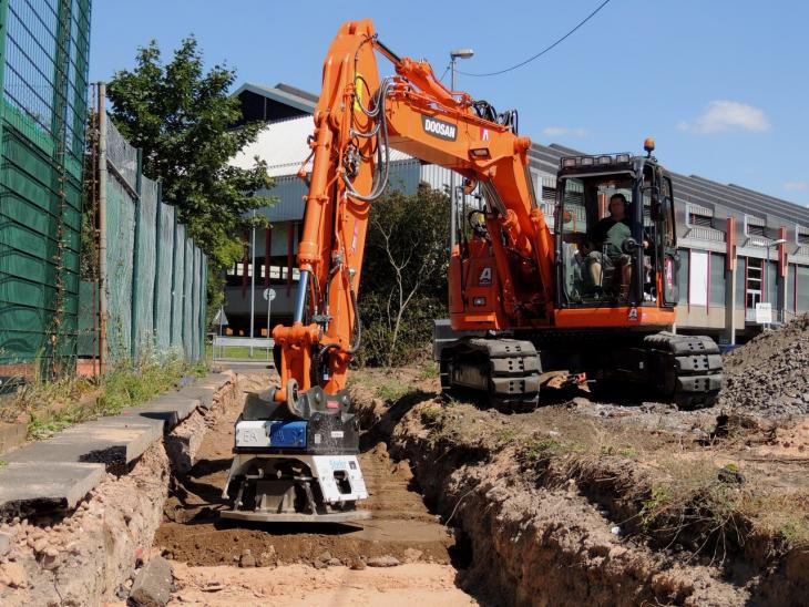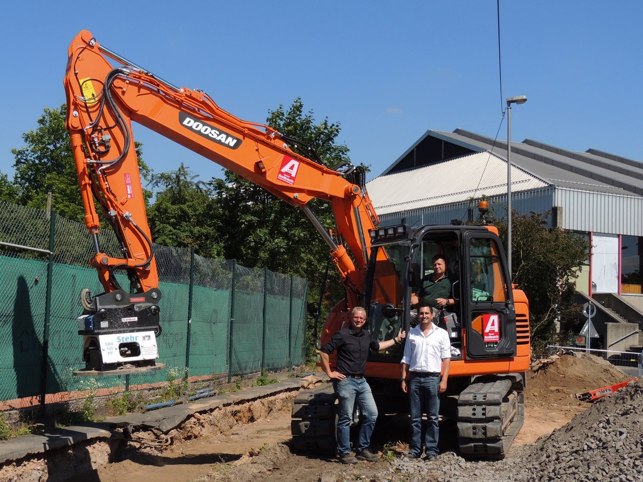 Bauforum24 1.482 Geschrieben 11. August 2014 Geschrieben 11. August 2014 Waterloo (Belgien), August 2014 - Seit März ist die Ernst Aulbach GmbH mit der weiträumigen Erschließung und Verlegung neuer Fernwärmeleitungen beschäftigt. Dabei sind Aufträge dieser Art zumeist von zeitintensiven Arbeitsschritten geprägt, für die gewöhnlich eine Vielzahl unterschiedlicher Geräte und Bediener notwendig ist. Die Ernst Aulbach GmbH hingegen erledigt die Arbeiten mit einem neuen Doosan-Kettenbagger DX140LCR-3 mit Verstellausleger. Dazu passend werden ein MTS Rototilt in Oil Quick-Sandwichbauweise und ausgewählte Anbaugeräte eingesetzt. Bauforum24 TV präsentiert: Video: Doosan DL450-3 und DA30 bei Steinbruchtagen Mendig 2014 Bernd Aulbach, Geschäftsführer der Ernst Aulbach GmbH, Maschinenbediener Hans-Peter Alischer und Heiko Marquart, Niederlassungsleiter Bobcat Obernburg [v.l.n.r.]Über 1.000 Meter - inklusive Vor- und Rücklauf - erstreckt sich der Fernwärmeleitungsbauauftrag, den die Ernst Aulbach GmbH aktuell abwickelt. Die Aschaffenburger Versorgungsgesellschaft beauftragte das Unternehmen bis Ende September mit der Fertigstellung des Projektes, bei dem vom Abfräsen der Asphaltdecke, dem Materialaushub, über die Verlegung der Leitungen, bis hin zur sukzessiven Verfüllung, Verdichtung und neuen Asphaltierung zahlreiche Arbeitsschritte in kurzer Zeit durchzuführen sind. Aufgrund der unterschiedlichen Breiten und Tiefen der Gräben ist die Arbeitsdurchführung sehr komplex: Einige der Bauabschnitte weisen eine Tiefe von bis zu 1,80 Meter auf, andere wiederum stellen wegen ihrer stark beengten Platzverhältnisse und dem dicht angrenzenden Straßenverkehr eine besondere Herausforderung dar. Aus eben diesen Gründen entschied sich die Ernst Aulbach GmbH zum Kauf des Doosan DX140LCR-3 mit Verstellausleger. Die Maschine der 14 t-Klasse verfügt laut Hersteller über einen ausbrennungsfreien 4-Zylinder Cummins-Motor, der die Abgasnormen der Stufe IIIB erfüllt und eine Leistungsstärke von 81 kW erzeugt. Dank des Gelenkauslegers soll das Modell eine Grabtiefe von bis zu 5,7 Metern erreichen und bei engen Kanal- und Leitungsbauten sowohl besonders nah am Planierschild, als auch seitlich an der Maschine arbeiten können. Bernd Aulbach, Geschäftsführer und technischer Leiter der Abteilung Tief- und Kanalbau des Unternehmens, über den Doosan DX140LCR-3: ?Der Bagger mit seinem Verstellausleger ist aufgrund seiner Kurzheckbauweise, der asphaltschonenden Roadlinerketten und durch die neuen Anbaugeräte einfach universal bei allen Projekten dieser Art einsetzbar.? Hans-Peter Alischer beim präzisen Materialverfüllen mit dem Doosan-Kettenbagger DX140LCR-3 plus MTS-Rototilt und GrabenräumlöffelZu Beginn jeden Bauabschnittes wird zunächst die Asphaltdecke mit einer Fräse entfernt. Für alle weiteren Arbeitsschritte kommt anschließend der Doosan DX140LCR-3 mit seinem Anbaugerätepaket ins Spiel. Als grundlegende Basis ließ sich die Ernst Aulbach GmbH ihren DX140LCR-3 mit einem hydraulischen Schnellwechselsystem der Marke Oil Quick ausstatten. Passend auf das OQ-System, mit dem der Anbaugerätewechsel per Knopfdruck möglich ist, wurden eine Stehr-Anbaurüttelplatte, ein MTS-Universalverdichter und als Zubehör ein neuer Grabenräum- und Tieflöffel angeschafft. Den Clou an dem Anbaugerätepaket stellt jedoch der MTS-Rototilt dar, der selbst nochmals mit einem weiteren Oil Quick-Schnellwechsler in Sandwichbauweise ausgestattet wurde. Die Vorteile des Rototilts werden vor allem bei engen Tief- und Kanalbauarbeiten schnell sichtbar: Zum einen sind die Zylinder bei diesem Modell nahezu horizontal verbaut und nicht seitlich und vertikal, wie bei den meisten Wettbewerbsprodukten. Dies soll zu einem deutlich schmaleren und niedrigeren Aufbau führen. Jedes weitere Anbaugerät, das jetzt von dem MTS-Rototilt aufgenommen wird, lässt sich aufgrund der kurzen Distanz zur Löffelbetätigung präzise und feinfühlig steuern. Zum anderen ermöglicht es der MTS-Rototilt dem Bediener, jedes Anbaugerät 360 Grad zu drehen und es frei nach Belieben zu schwenken. So nutzt Maschinenbediener Hans-Peter Alischer den Rototilt in Kombination mit dem Grabenräumlöffel zum Aushub des Grabens und zum präzisen Verfüllen nach fertiggestellter Leitungsverlegung. Verdichtungsarbeiten mit der - am Doosan-Kettenbagger DX140LCR-3 angebauten ? Stehr-AnbaurüttelplatteFür die zwischenzeitlich zu erledigende Verdichtung kommen sowohl der MTS- Universalverdichter, als auch die Stehr-Anbaurüttelplatte zum Einsatz. So wird der MTS- Universalverdichter, für alle ersten Verdichtungsarbeiten rund um und unterhalb der Leitungsrohre genutzt. Nach diesem Arbeitsschritt legt der Maschinenbediener den Anbauverdichter per Knopfdruck ab, nimmt mit dem MTS-Rototilt den Grabenräumlöffel auf und verfüllt den Kanal weiter mit neuem Material. Zur finalen Verdichtung kommt schließlich die Stehr-Anbaurüttelplatte zum Einsatz. Das Modell verfügt über eine hohe Frequenz und eine breite, nahezu runde Arbeitsfläche, mit der sich größere Flächen schnell und effizient verdichten lassen. Durch den Erwerb der beiden Anbauverdichter konnte die Ernst Aulbach GmbH das übliche Arbeiten mit Stampfern und Rüttelplatten innerhalb tiefer Gräben komplett ersetzen und optimieren. Bernd Aulbach ist zufrieden mit dem neuen Doosan-Kettenbagger und seinen Anbaugeräten: ?Früher haben wir zur Durchführung solch eines Projektes deutlich mehr an Maschinen und Personal benötigt. Heute hingegen und mit dieser modernen Technik, kann ein einziger Mitarbeiter nahezu alle operativen Arbeiten bequem aus der Baggerkabine erledigen. Dadurch ist unser Unternehmen in der vorteilhaften Lage, mehr Aufträge zur gleichen Zeit durchzuführen. Das steigert natürlich nicht nur die Effizienz unserer Arbeit, sondern auch die Wirtschaftlichkeit unseres Unternehmens, was sich in der Kunden- und Mitarbeiter-zufriedenheit deutlich widerspiegelt.?Die Ernst Aulbach Gm