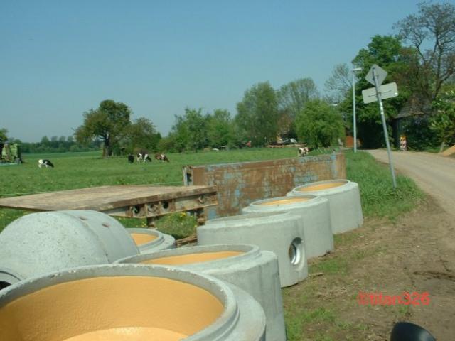 titan326 1 Geschrieben 1. Mai 2005 Geschrieben 1. Mai 2005 HalloHier wird in nächster Zeit der Kanal saniert.Die Fa. die die Arbeiten ausführt ist die Fa. Nießen aus Hückelhoven.Verlegt werden KG-Rohre DN 250, also nur ein kleiner Kanal. Es wurden schon mehrere Fertigteilschächte angeliefert und ein Komatsu PW160 ist auch schon dort.Bilder Zitieren
