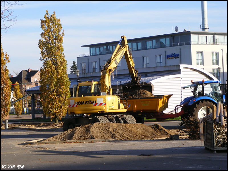 HBA 14.971 Geschrieben 17. Januar 2015 Autor Geschrieben 17. Januar 2015 Wechsel der Örtlichkeit zur Alten Werft (der ehemaligen Meyer Werft, welche heute als Veranstaltungsfläche genutzt wird). Auf einem eigentlich als Busparkplatz genutzten Außenbereich war während der LGS eine Open Air-Bühne eingerichtet. Ein Komatsu Mobilbagger verlädt während des Rückbaus Sand aus den Blumenbeeten auf ein Traktorgespann. Zitieren