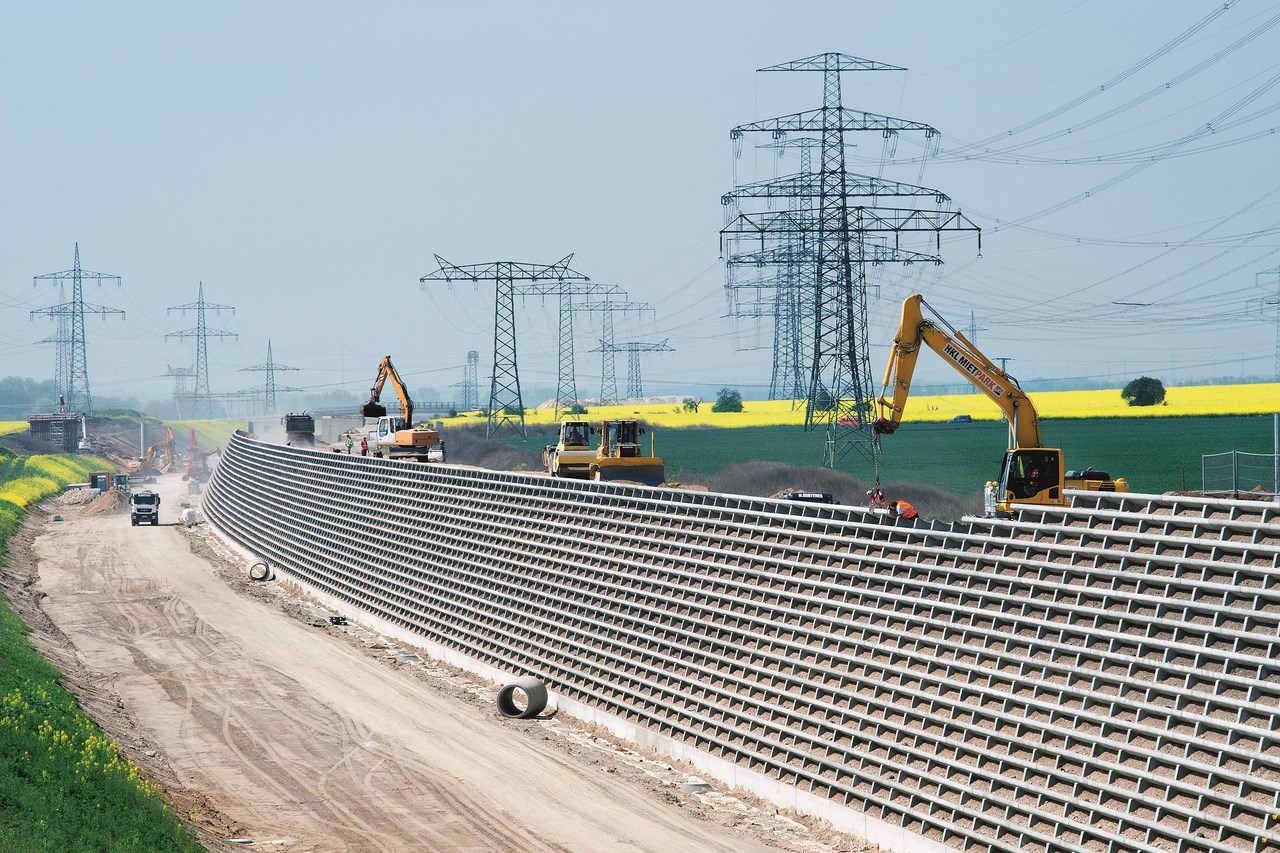 Bauforum24 1.491 Geschrieben 8. Januar 2015 Geschrieben 8. Januar 2015 Bad Lauchstädt, 8. Januar 2015 ? Zahlreiche Kompaktmaschinen aus dem HKL Mietpark kamen beim Ausbau der Verkehrsinfrastruktur in den neuen Bundesländern zum Einsatz. Im Rahmen der Verkehrsprojekte Deutsche Einheit (VDE) wurde die ICE-Strecke Nürnberg-Berlin von Herbst 2012 bis Ende Oktober 2014 auf einer Gesamtlänge von 481 Kilometern erneuert und weiter ausgebaut. Bauforum24 Artikel (16.12.2014): Containeranlage für Fabrikausbau der Südzucker AG in Zeitz Der acht Tonnen schwere Minibagger von HKL füllt die Zwischenräume der Stützmauer mit einem Gemisch aus Erde, Schotter und MineralienHierbei leisteten die Maschinen aus dem HKL Center in Leipzig wertvolle Dienste: Sie wurden zur Errichtung einer 15 Meter hohen und zwei Kilometer langen Stützmauer entlang den Bahngleisen auf der Höhe Bad Lauchstädt genutzt, die aus circa 30.000 Betonelementen besteht. Sie schützt die unterhalb des angrenzenden Hanges entlangführenden Gleise besser vor witterungsbedingten Erdrutschen oder umfallenden Bäumen.Das Team der beauftragten Bickhardt Bau AG setzte die Maschinen aus dem HKL Mietpark für verschiedene Arbeiten ein ? von Hebearbeiten über Erdbewegung bis zur Bodenverdichtung: Kettenbagger mit 20 und 25 Tonnen Gewicht, Mobilbagger mit 16 Tonnen, Minibagger mit 8 Tonnen sowie drei Walzenzüge von sieben bis 13 Tonnen waren beim Geländeausgleich und der Stabilisierung der Stützmauer aktiv. Fünf Lichtgiraffen sorgten für die notwendige Beleuchtung der Baustelle. Für die aufwendigen Hebearbeiten wurden die Kettenbagger mit speziellen Lasthaken ausgestattet. Damit konnten sie sicher und problemlos die drei Tonnen schweren Betonelemente manövrieren. Die Maschinen nahmen die Betonelemente am Hang auf, brachten sie dann in die entsprechende Position und hängten sie in das Mauerkonstrukt ein. Auch übernahmen die leistungsfähigen Bagger alle anfallenden Erdbewegungsarbeiten. Eine Vielzahl leistungsstarker Maschinen aus dem HKL Mietpark ist beim Verkehrsprojekt Deutsche Einheit aktivPer Schnellwechselsystem mit Anbauwerkzeugen wie Grabenräumschaufeln und Tieflöffeln ausgestattet wurden sie für die Auskofferungen eingesetzt. Für die Verdichtung des Bodens auf dem schmalen Abschnitt hinter der Mauer wurden die modernen Walzenzüge mit 3-Wellen-Verdichtungstechnik genutzt. Nachdem das Stützkonstrukt fertig gestellt war, setzten die Arbeiter den acht Tonnen schweren Minibagger von HKL zur Stabilisierung der Mauer ein: Die Zwischenräume wurden mit einem Gemisch aus Erde, Schotter und Mineralien gefüllt. Der seitlich verstellbare Ausleger der Kompaktmaschine erlaubte das Arbeiten über die gesamte Mauerbreite hinweg. Da das Timing des Projektes eng bemessen war, wurde oft bis in die späten Abendstunden gearbeitet. Um jederzeit gute Sicht zu gewährleisten, übernahmen 1.500 Watt starke Lichtgiraffen aus dem HKL Mietpark die Ausleuchtung der Baustelle bei Nacht. ?Wir haben die Baustelle mit einer Vielzahl leistungsstarker Maschinen aus unserem Mietpark ausgestattet, je nach Anforderung mit zusätzlichem Spezialzubehör. Bei Projekten wie diesem zeigt sich die Leistungsstärke von HKL in puncto Maschinenauswahl und Verfügbarkeit? erklärt Volkmar Weber, Betriebsleiter im HKL Center in Leipzig. Über das Projekt:Ziel der umfassenden Baumaßnahmen auf der Strecke Nürnberg-Berlin ist die Optimierung der Nord-Süd-Hochgeschwindigkeitsverbindung im transeuropäischen Verkehrsnetz. Diese ist von hoher Bedeutung für die Anbindung der Zentren Berlin und München. In Zukunft soll die Fahrt von Berlin über München bis nach Italien (Verona und Palermo) schneller werden. Ab 2017 wird die Fahrzeit zwischen Berlin und München von jetzt sechs auf etwa vier Stunden reduziert.Am 9. April 1991 hatte die Bundesregierung die Verkehrsprojekte Deutsche Einheit (VDE) und deren vordringliche Durchführung beschlossen. Diese Baumaßnahmen umfassen neun Schienen- und sieben Autobahnprojekte sowie ein Wasserstraßenprojekt. In die VDE wurden zwischen 1991 und 2013 rund 34 Milliarden Euro investiert. Auf die Schienenprojekte entfallen dabei 16,9 Milliarden Euro, auf die Straßenprojekte 15,3 Milliarden Euro und auf das Wasserstraßenprojekt 1,6 Milliarden Euro. Das aktuelle Gesamtbauvolumen aller VDE-Projekte umfasst 39,7 Milliarden Euro. Weitere Informationen: HKL Baumaschinen Video: HKL Baumaschinen - Imagefilm (© Fotos: HKL Baumaschinen) Bauforum24 Artikel (10.12.2014): Bahndammsanierung in Urweiler Bauforum24 Artikel (24.11.2014): Erdarbeiten bei Wohnraum-Großprojekt in Bielefeld-Schildesche Bauforum24 Artikel (07.11.2014): HKL Baumaschinen neu in Bonn Bauforum24 Artikel (24.10.2014): HKL Baumaschinen steigert Präsenz in Bayern Bauforum24 Artikel (24.10.2014): Explosiver Einsatz für HKL in Schwerin Bauforum24 TV präsentiert: HKL Baumaschinen - Kramer 8095 und Yanmar SV - NordBau 2014 Bauforum24 TV präsentiert: Video: HKL BAUMASCHINEN mit neuen Produkten auf der NordBau 2013 Bauforum24 TV präsentiert: Video: HKL im Gebrauchtmaschinenmarkt - bauma 2013 Bauforum24 TV präsentiert: Video: HKL zeigt neueste Miet-Highlights - NordBau 2012 Zitieren