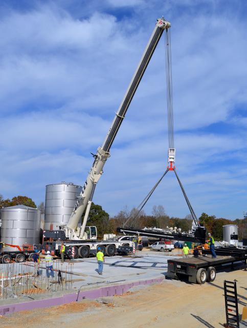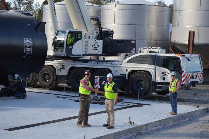 Bauforum24 1.491 Geschrieben 4. Februar 2015 Geschrieben 4. Februar 2015 Lynchburg, Tennessee, USA. Ordentlich einen heben: In der Jack Daniel's Destillery mussten zwei schwere Brennkessel gehoben werden. Kranunternehmen Gilley Crane aus Manchester, Tenneessee, setzte dafür einen neuen Terex Explorer 5800 Mobilkran ein. Wichtigste Regel: Bloß nichts anstoßen ... Bauforum24 Artikel (25.11.2014): Neuer Terex Explorer 5500 All-Terrain-Kran Der Name Jack Daniel?s steht für handwerkliches Können und Qualität. Bestellt man einen Whisky dieser Marke, kann man sich darauf verlassen, dass an diesem Produkt alles stimmt.Dies gilt gleichermaßen für die Dienstleistungen von Gilley Crane Rigging & Moving aus Manchester, Tennessee, USA. Das Unternehmen ist bekannt für seinen Qualitätsservice durch gut ausgebildete Fachleute, sichere Hubtechnik sowie dafür, über die modernsten Maschinen und Geräte auf dem Kran- und Logistikmarkt zu verfügen.Die beiden Wegbereiter in Sachen Qualität trafen aufeinander, als Gilley Crane mit dem Hub von zwei Kesseln in der Brennerei von Jack Daniel?s in Lynchburg beauftragt wurde, die jeweils 45,4 Tonnen auf die Waage bringen. Eine anspruchsvolle Aufgabe: Beide Kessel waren auf beengtem Raum jeweils zweimal mit einer Ausladung von 8,5 m anzuheben. ?Auf der einen Seite wurde die Aufgabe durch einen eingezäunten Bereich und umliegende Gerätschaften erschwert. Auf der anderen Seite hatten wir mit der hervorstehenden Bewehrung am Sockel des Kessels zu kämpfen?, erläutert Unternehmensinhaber Robert Gilley von Gilley Crane.Google Maps: Die Jack Daniel's Destillery in Lynchburg, Tennessee, USAAufgrund der räumlichen Einschränkungen benötigte die Crew von Gilley Crane einen kompakten Kran mit hervorragender Manövrierfähigkeit. Zudem musste der Kran straßenverfahrbar, schnell aufzubauen und effizient im Betrieb sein, denn für dieses Projekt stand nur ein Zeitfenster von zwei Tagen zur Verfügung.Die Wahl fiel auf einen Neuzugang in der Flotte von Gilley Crane ? auf einen Kran, der mit seiner Marke und dem dahinter stehenden Team ebenfalls für Qualität und Service steht: Den neuen Terex Explorer 5800 All-Terrain-Kran, den Gilley Crane vor Kurzem bei seinem Terex Cranes Händler Renegar-Driggers Machinery Co., Inc. in Cleveland, Tennessee erworben hatte. ?Ich habe in meinem Leben schon viele Maschinen gekauft und weiß sehr gut, dass es keinen besseren Service und Support als den von Terex und Renegar-Driggers gibt?, erzählt Robert Gilley. Der Terex Explorer 5800 All-Terrain-Kran wurde als straßentaugliches Modell für alle Schlüsselmärkte entwickelt. Er lässt sich so konfigurieren, dass sein fünfachsiges Fahrgestell strengste Achslastwerte von unter 9 t pro Achse einhält. Außerdem verfügt er über eine kompakte Unterwagenlänge von nur 13,2 m und einen vorderen Überhang von lediglich 1,2 m. Auch seine geringe Breite von 3 m trägt dazu bei, dass dieser Kran der 220-Tonnen-Tragfähigkeitsklasse ohne Einschränkungen auf fast allen Straßen zugelassen ist. Heben und Verladen der 4,5 Tonnen schweren Kessel-SockelDie vierköpfige Crew von Gilley Crane bewältigte mit dem Explorer 5800 einschließlich vollem Gegengewicht die knapp 50 km lange Strecke zwischen Manchester und Lynchburg in kürzester Zeit. Es bedurfte lediglich weiterer vier Transporte, um das Gegengewicht des Krans von 70,2 t zum Einsatzort zu verbringen.Der Explorer 5800 All-Terrain-Kran lässt sich mitsamt seinem Teleskop-Hauptausleger von 70 m verfahren. So konnte er am Einsatzort schnell aufgebaut werden und bot bei weitem genug Länge für den Hub der Kessel. Das automatische Rüstsystem für die Gegengewichte des Terex All-Terrain-Krans trug ebenfalls zu einer kurzen Aufbauzeit bei. ?Insgesamt benötigten wir für den Aufbau und bis zur Einsatzfähigkeit des Krans etwa eineinhalb Stunden?, berichtet Scott Peterson, Projektmanager von Gilley Crane.Ein weiteres Merkmal verleiht dem Allroundtalent Explorer 5800 hohe Effizienz auf Straße und Baustelle: Das Terex Einmotorenkonzept für den Antrieb von Unterwagen und Kranfunktion. ?Der Motor verfügt über ein einzigartiges Leistungsmanagement mit automatischer Auswahl für alle Lastzyklen?, erläutert Steve Ake, Regional Business Manager bei Terex Cranes. ?Ein einziger Motor für alle Antriebsoptionen ? das sorgt für weniger Gewicht und Wartungsaufwand und somit für eine Senkung der langfristigen Betriebskosten.?Dank seines leistungsstarken Tier 4F/Euromot-IV-Motors (12,7 Liter, 405 kW) erreicht der Kran auf der Straße Geschwindigkeiten von bis zu 85 km/h. Vor Ort werden Drehzahl und Leistung des Motors auf 1.600 U/min bzw. 205 kW gedrosselt, sodass mehr als genug Leistung für einen sicheren Kranbetrieb zur Verfügung steht, aber gleichzeitig der Kraftstoffverbrauch im Vergleich zu Kranen mit zwei Motoren deutlich gesenkt wird. ?Es ist unglaublich, welche Einsparungen man durch die effizientere Kraftstoffnutzung erzielen kann?, berichtet Scott Peterson. Robert Gilley fügt hinzu: ?Das Einmotorenkonzept bringt uns echte Vorteile und liefert erstklassige Leistung sowohl beim Fahren als auch im Hubbetrieb.? Alles in allem waren acht Hubvorgänge zum Bewegen und Platzieren der beiden Kessel und ihrer Sockel notwendig. Die 6,1 m hohen und 7,6 m langen Kessel sowie ihre 4,5 t schweren Sockel wurden zunächst auf Anhänger verladen und über eine Strecke von etwa 190 m an ihren endgültigen Standort verbracht. Bei einer Auslegerlänge von 16,7 m und einer Ausladung von 8,5 m war es für den Explorer 5800 ein Leichtes, die Kessel und Sockel zu heben und zu positionieren.?Wir hatten nur wenig Raum zur Verfügung, um den Kran zu bewegen. Aber die Lenkung des Explorer 5800 ist besser als alles, was wir bei anderen Kranen auf dem Markt finden konnten?, erläutert Robert Gilley. Die sechs Lenkarten ? darunter Off-Wall und Hundegang ? des Explorer 5800 verschaffen ihm einen Wendekreis von nur 11,4 m und somit eine hervorragende Manövrierfäh