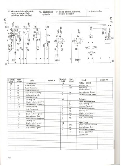 HML30F 0 Geschrieben 5. Juni 2015 Autor Geschrieben 5. Juni 2015 Hallo Hydraulix,ich hatte heute erneut die Zeit und habe mich dem Bagger gewidmet.Hierbei ist mir ein Unterschied zu meinem Ersatzteilbuch aufgefallen.Im Ersatzteilbuch geht eine Spülleitung, eine Tankleitung/Leckölleitung eine Steuerleitung für die Motorverstellung und zwei dicke Leitungen A und B zum Fahren zum Motor.Am Bagger gehen aber statt einer Steuerleitung zwei Steuerleitungen zum Motor. Diese gehen beide von der Hydraulikpumpe (Verstellung der Pumpe) über ein Magnetventil von Bosch mit 4 Anschlüssen (2 von der Pumpe, 2 zum Motor) durch die Drehdurchführung zum Motor. Ich weiß leider aktuell nicht was dieses Magnetventil für eine Bauart ist. (4/2-Wege?) Ich werde hierzu morgen versuchen das Typenschild zu entziffern.Was hat es hier mit dem Unterschied (1 Steuerleitung vs. 2 Steuerleitungen) auf sich? Ist dies bereits eine neuere Variante des Fahrantriebs? (So wie es der HML31 hat?)Aktuell verstehe ich noch nicht, wieso der Bagger im 2. Gang super Zugkraft hat bis die Räder durchdrehen und im 1. Gang nicht.Ich habe hier noch immer die Elektrik im Verdacht, da meine Fahrtrichtungsanzeigen nicht funktionieren.Weiß einer was der Schalter automotives Fahren (S11) im Schaeff Bagger ist? Dieser ist in meiner Betriebsanleitung aufgeführt, ich kann ihn aber im Bagger nicht finden. Würde hier laut Schaltplan ein defekt/Wackler vorliegen, so würde der Bagger in Neutral schalten. Würde dazu passen, dass der Motor sich garnicht plagt wenn er im 1. Gang nicht fahren will.Ebenfalls könnte dies Einfluss auf die Fahrtrichtungsanzeigelampen H7 und H8 am Brückengleichrichter rechts oben im Schaltplan haben. Oder der Brückengleichrichter ist defekt...Wofür ist er überhaupt gut? Zitieren