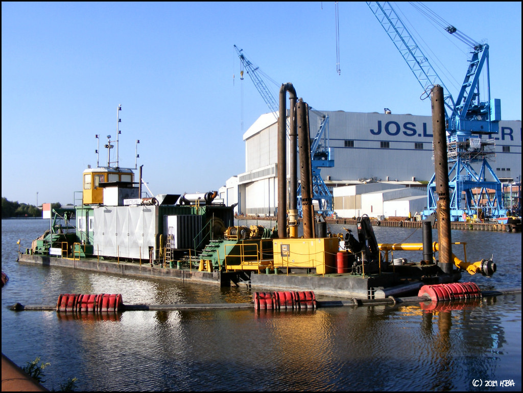 HBA 14.955 Geschrieben 2. März 2019 Autor Geschrieben 2. März 2019 Neben dem Unterhalt der Kanäle und Flüsse müssen auch die Hafenanlagen kontinuierlich vom immer nachfließenden Schlick befreit werden. Die Stadt Papenburg unterhält zu diesem Zweck seit 2003 den auf Pontons aufgebauten Saugbagger "Seeteufel". Die 38 Meter lange und 8,50 Meter breite Maschine kann mit Hilfe der hydraulischen Sauganlage DOP350L der niederländischen Damen Dredging Equipment B.V. in Tiefen zwischen 3 und 10 Metern arbeiten. Außerdem besteht die Möglichkeit, im Wasser-Injektionsmodus Wasser mit Höchstdruck in den Schlick einzuschiessen, um diesen damit fließfähig zu machen. Hier ein älteres Foto des "Seeteufel" aus dem Jahr 2008. Zitieren