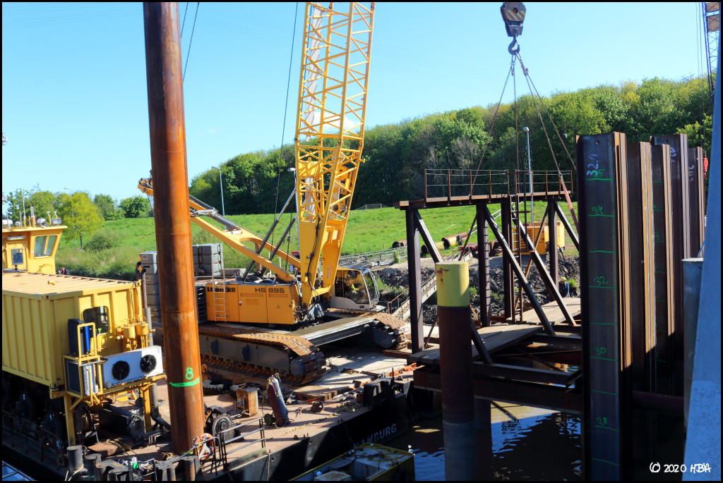 HBA 15.167 Geschrieben 9. Januar 2021 Autor Geschrieben 9. Januar 2021 Anfang Mai hatte der Stahlbau begonnen, gearbeitet wurde von der Land- wie der Wasserseite. Ich konnte den Liebherr HS895 beim Versetzen einer stählernen Hilfskonstruktion beobachten: 1 Zitieren