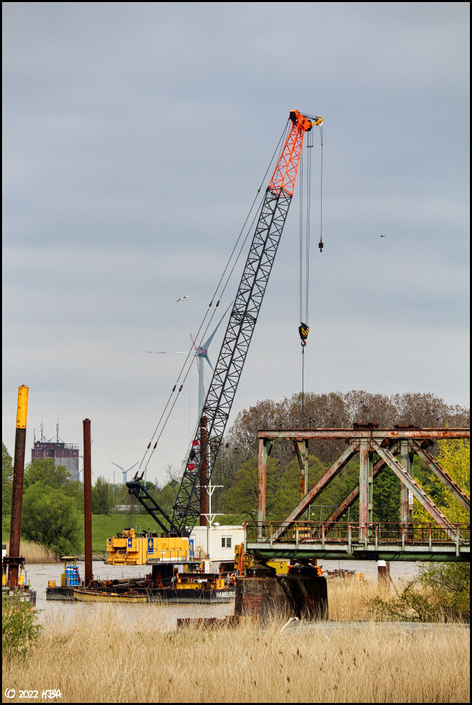 HBA 15.066 Geschrieben 9. Mai 2022 Autor Geschrieben 9. Mai 2022 Am Abend des 03.12.2015 kollidierte das Frachtschiff "Emsmoon" bei seiner Fahrt auf der Ems aufgrund beidseitig missverstandenem Funkverkehr zwischen Brückenwärter und Lotsen mit der Eisenbahn-Klappbrücke bei Weener, der Friesenbrücke. Diese Brücke führt die Eisenbahnstrecke Leer - Groningen (Kursbuchstrecke 397) sowie einen Fußweg über die Ems. Sie wurde bei dem Zusammenprall irreparabel zerstört. Sollte sich jemand für die Brücke am Tag nach der Kollision interessieren, ich habe damals ein Video gemacht: Jetzt, etliche Jahre nach dem Desaster, haben der komplette Rückbau der alten Brücke sowie ein Neubau an gleicher Stelle begonnen. Neben dem oben schon angeführten Schwimmkran "Enak" ist die Firma Depenbrock mit ihrem Ponton "Jan" mit aufstehendem Liebherr HSS 883 vor Ort, welcher zuvor am Schleusenneubau in Papenburg beteiligt war. 3 Zitieren