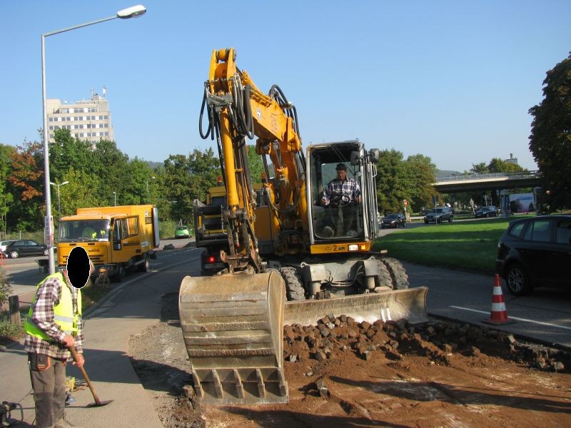 Atlasmalte 12.701 Geschrieben 11. April 2016 Autor Geschrieben 11. April 2016 Im Oktober 2013 fanden dann Sanierungsarbeiten im Trierer Verteilerkreis statt. Hierbei handeld es sich um einen Kreisvehrkehr Im Norde von Trier, wo sich Auffahten zur Autobahn A 602 befinden, welche den Trierer Norden mit der Autobahn A 1 verbindet. Hier wurde mit dem Liebherr A 312 Litronic zuerst das alte Kopfsteinpflaster unter dem Belag freigelegt. Zitieren