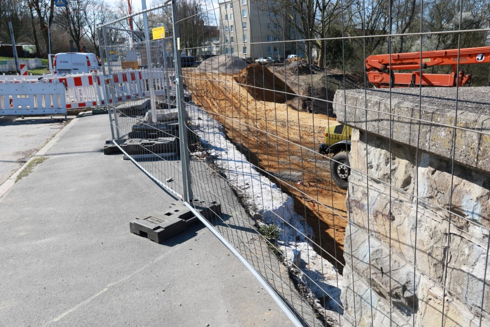 csoekeland 412 Geschrieben 23. März 2017 Geschrieben 23. März 2017 Im Kreuzungsbereich Buselohstraße / Auf der Prinz / Harpener Straße laufen anscheinend die Vorbereitungen für den Umbau der Verkehrsbeziehungen. Der Briefkasten wirkt etwas verloren... Mittlerweile wurde eine Baustellenampelanlage installiert, die aber noch nicht in Betrieb ist. Auf der Fahrbahn wurden in den letzten Tagen einige Markierungen angebracht... Die Baugruben wurden verfüllt und provisorisch asphaltiert... In der Harpener Straße laufen noch Rohrarbeiten... Ich bin gespannt, wann die Arbeiten für den Kreisverkehr beginnen... Momentan werden die Rohre für die Fernwärmeleitungen durch die Leerrohre der Brücke gezogen... Auf der Brücke wird nun auch wieder fleißig gearbeitet... Im Bereich der zukünftigen Fahrbahn wird gerade händisch Zement aufgetragen. Weiß jemand, worfür das ist? Am rechten Rand wird eine Inprägnierung (?) aufgebracht Mit der Seilwinde werden die Rohre durchgezogen... Die Gasleitung rechts hat bereits ihr Ziel erreicht. Am Kopf sieht man noch die Zugöse! Die Seilwinde ist im Widerlager der alten Brücke rückverankert... In einer ersten Suchschachtung wurden Leitungen freigelegt... 1 Zitieren