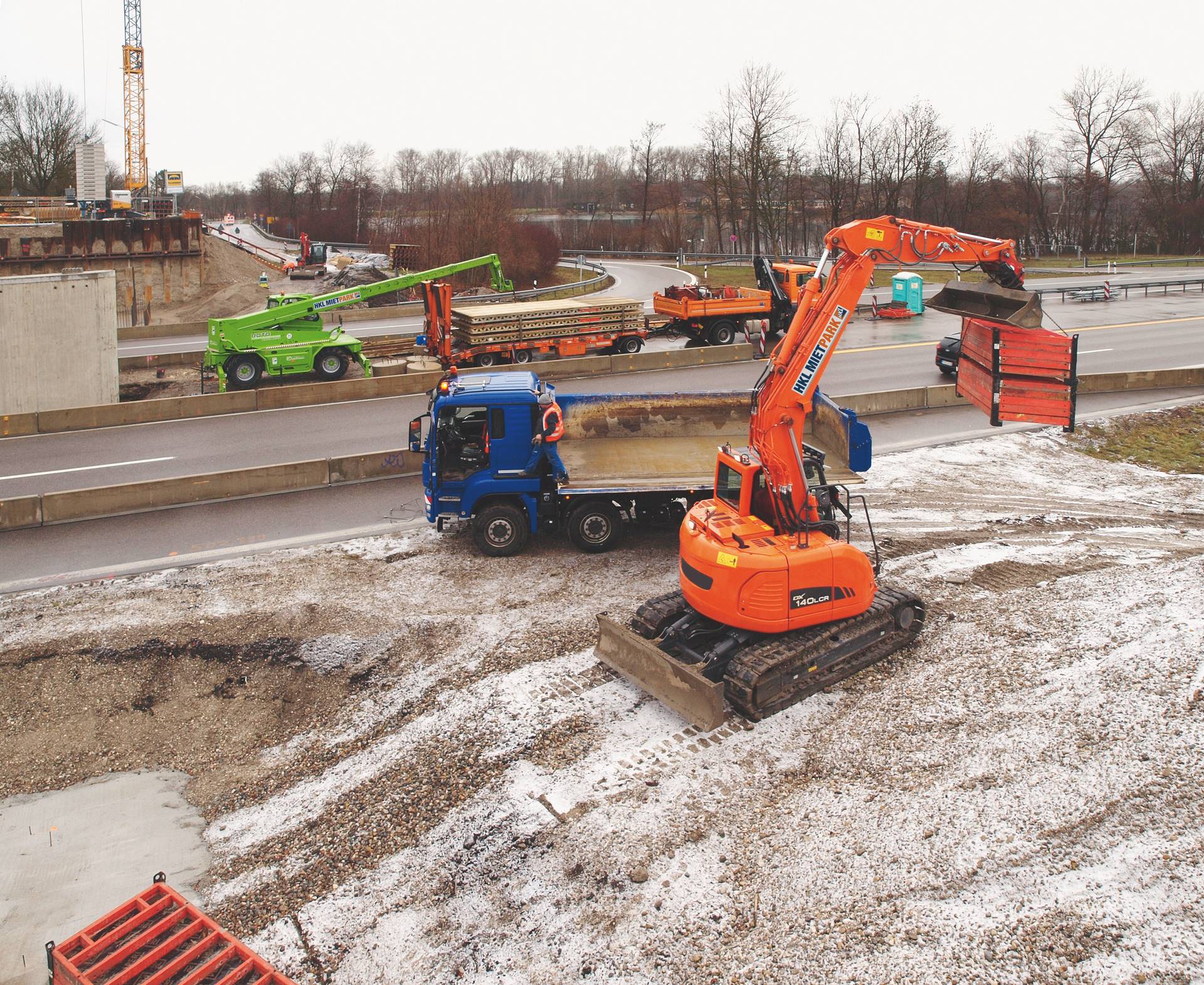Bauforum24 1.444 Geschrieben 28. Dezember 2015 Geschrieben 28. Dezember 2015 München, Dezember 2015 ? Neue Autobahnbrücke für Bayern: Maschinen von HKL unterstützen die Experten der Firma Fahrner Bauunternehmung GmbH (Fahrner) aus Mallersdorf-Pfaffenberg beim Neubau einer Brücke über die A8 an der Anschlussstelle München-Langwied. Die alte Überführung war über 75 Jahre alt, eine Instandsetzung wurde für nicht mehr wirtschaftlich befunden. Deswegen wurde sie abgerissen und wird jetzt durch eine neue Brücke ersetzt. Bauforum24 Artikel (26.11.2015): Neubau der Possehlbrücke in Lübeck Neue Überführung an der A8: Bagger von HKL bei der Hinterfüllung der BrückenwiderlagerDas Team aus dem HKL Center München-West begleitet das Projekt mit den passenden Maschinen. Diese übernehmen beim Bau der Brücke verschiedene Aufgaben: Für den Aushub der neuen Betonfundamente ist ein 13-Tonnen-Kompaktbagger mit geringem Heckschwenkradius auf der Baustelle mit teilweise beengten Platzverhältnissen im Einsatz. Für die Errichtung des Brückenpfeilers befördern Teleskopmaschinen Schalungsteile in die Mitte der Fahrbahn. Hier werden die Elemente miteinander verbunden und anschließend mit Stahlbeton ausgegossen. Weitere Raupenbagger sind mit der Hinterfüllung der Brückenwiderlager befasst. Diese stützen die Seitenenden des Brückenüberbaus und leiten die auf ihn einwirkenden Kräfte in den Baugrund ab. Neuer Brückenpfeiler: Leistungsstarke Teleskopmaschinen von HKL befördern Schalungsteile in die Mitte der FahrbahnStephan Bauer, Bauleiter Fahrner, sagt: ?Der Bau einer Brücke besteht aus diversen Einzelteilen, die alle perfekt aufeinander abgestimmt sein müssen. Hierfür braucht man Geräte, die flexibel einsetzbar sind und konstant hohe Leistung bringen. Das Team von HKL hat uns bestens beraten und uns mit Maschinen versorgt, die genau zu unserem Vorhaben passen.?Die neue Überquerung der A8 soll rund 60 Meter lang und bis zu 6,40 Meter hoch werden. Sie wird in ihren Abmessungen so errichtet, dass auf ihr ein kombinierter Geh- und Radweg zur Erschließung der nördlich gelegenen Autobahnseen untergebracht werden kann. Die Arbeiten wurden gezielt in die Zeit gelegt, in der kein Badebetrieb an den Autobahnseen stattfindet. Zahlreiche Maschinen sind beim Neubau einer A8-Überführung bei München aktiv Experten im Brückenbau: Stephan Bauer, Bauleiter der Firma Fahrner und Thomas Schmidt, Betriebsleiter im HKL Center in München-West Weitere Informationen: HKL Baumaschinen (© Fotos: HKL Baumaschinen) Bauforum24 Artikel (16.10.2015): Brückensanierung auf der A45 Bauforum24 Artikel (27.08.2015): Maschinen von HKL für die Kampfmittelbeseitigung Bauforum24 Artikel (08.07.2015): Bau von Straßenentwässerungsleitungen in Hamburg Bauforum24 Artikel (24.04.2015): Ausbau der U-Bahn-Linie U4 in Hamburg Bauforum24 Artikel (25.02.2015): HKL beim FIS Skisprung Weltcup in Willingen Bauforum24 TV präsentiert: Video: Yanmar V7 und V8 Radlader ? Nordbau 2015 Bauforum24 TV präsentiert: Video: Yanmar SV100-2 Verstellausleger von HKL - Nordbau 2015 Bauforum24 TV präsentiert: Video: HKL Baumaschinen - Kramer 8095 und Yanmar SV - NordBau 2014 Bauforum24 TV präsentiert: Video: HKL im Gebrauchtmaschinenmarkt - bauma 2013 Zitieren