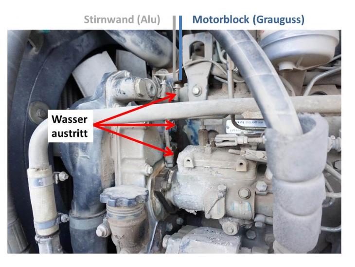 Nikolausn30 1 Geschrieben 4. Januar 2016 Autor Geschrieben 4. Januar 2016 Moinund danke für die schnelle Antwort. Ja es läuft von oben runter. Oben sitzt das Thermostat, an dem die Dichtung schon getauscht wurde. Auf einer Abbilung des Motorblockes aus dem Service-Handbuch sieht man aber noch 2x Kühlwasserkanäle am Zyl.-Kopf.Wir vermuten das zwischen Zylinderkopf <> Stirnwand raus kommt. Dafür muss die Stirnwand ab... und da fängt das Problem an:x Kann der Motor dafür im Radlader bleiben?x Muss die Ölwanne dafür raus?x Was ist noch ab zu schrauben...>> ...dafür brauche ich Explosionszeichnungen oder jemanden der weiß was in die Quere kommen kann. Zitieren