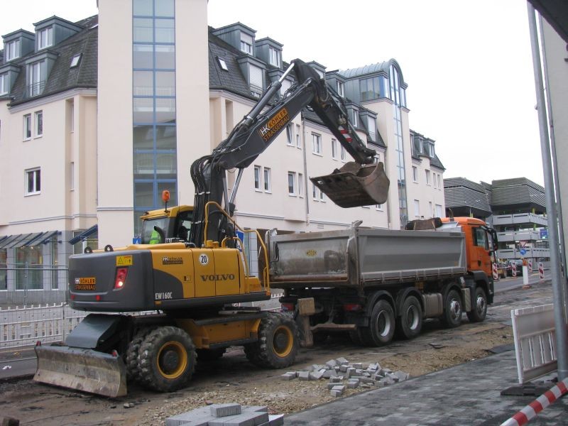 Atlasmalte 12.474 Geschrieben 29. Januar 2017 Autor Geschrieben 29. Januar 2017 Ende Febuar 2015 war der Gehweg weitgehend fertig. Als weiterer Bager war neben dem Volvo EW 160 C der Firma Köhler zeitweise ein Komatsu PW 180-7 der Firma C. Schnorpfeil vor Ort. Mit diesem wurde unter anderem die Fahrbahndecke aufgestemmt, damit auch hier der Ausbau beginnen konnte. Zitieren