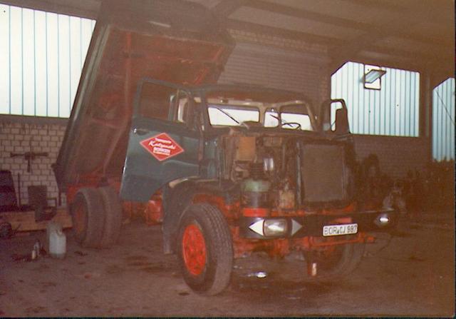 ehfra 0 Geschrieben 18. Mai 2008 Geschrieben 18. Mai 2008 (bearbeitet) Hier nochmal der CK 288 auf einer Baustelle direkt vor unserer Haustür.Dann der CJ 903 bei einer Lackieraktion am Wochenende und einmal die Fahrzeuge auf dem Hof.Links der CK 288, dahinter der erste Kippsattelauflieger, daneben der Cj 903 und der 26.256, daneben müsste der 2 Achser ein 16.168 stehen.Dazu kam dann noch der 304er als Tieflader und der 2 Achser mit dem Tieflader.Links neben dem 304er steht noch ein Schwanenhalstieflader der dann auf den 304er kam und der Tieflader von diesem kam auf den F90In der Halle stand noch ein 230er DHAK Bj 1967. Der erste Dreiachser der Firma.Sollte mal instandgesetzt werden aber war alles nicht so einfach ein passendes Fahrerhaus zu finden.Eigentlich sollte das Fahrerhaus drauf von dem der Motor des 2 Achsers stammte aber ich glaube es passte damals nicht.Die Bilder sind alle so aus der Zeit 1986 bis 1988.Ich hatte seit meiner Kindheit sehr viel Zeit in den Ferien usw. bei Katzenski verbracht, da mein Vater dort teilweise zur Aushilfe fuhr und wenn ich mich nicht irre war meine Tante auch mit Frau Katzenski ( einer netten lieben Frau mit dem Herz am rechten Fleck) verwandt/verschwägert aber genau weiß ich es auch nicht mehr.Ist schließlich schon fast 20 Jahre her.Später habe ich dann als Jugendlicher in den Ferien mit, am neuen Standort Borken,an Halle und Haus gebaut.Auch als ich schon selber gearbeitet habe und Geselle war habe ich bei Reparaturen oder Baustellen mitgeholfen.Teilweise habe ich auch angefangen die Wagenpflege zu machen aber wegen meiner Wechselschicht auch ,am Wochenende, konnte ich diese nicht regelmäßig machen.So jetzt wisst Ihr auch wo ich die Bilder her habe bzw wann ich sie gemacht habe.Mit der Übernahme der Firma durch den Sohn 1990 habe ich aber den Kontakt eingestellt.Dadurch hatte ich aber leider auch keinen Kontakt mehr zu Jan´s Vater und seinem Opa, der immer korrekt war und nie vergaß wenn man ihm einen Gefallen oder sonstiges getan hatte. Wenn man ihn nach etwas fragte oder um etwas bat bekam man nie ein nein zu hören.@ Jan Habe Dir mal eine PN geschicktGruß Frank bearbeitet 18. Mai 2008 von ehfra Zitieren