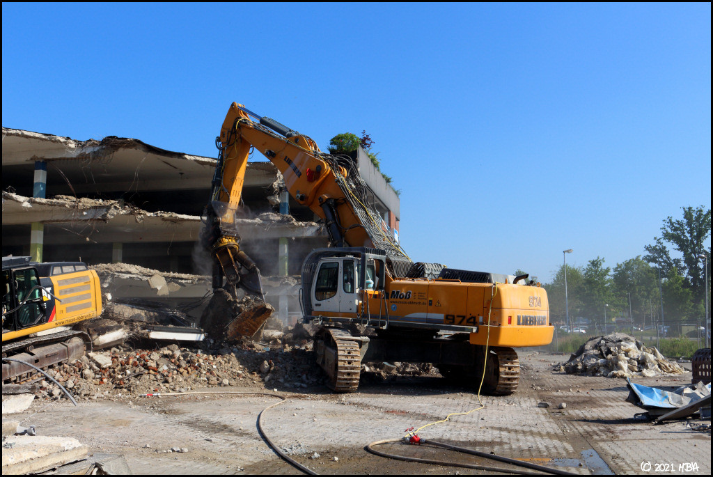 HBA 15.173 Geschrieben 17. Juli 2021 Autor Geschrieben 17. Juli 2021 Am 14. Juni war ein beträchtlicher Teil des Parkhauses bereits Geschichte. Der Liebherr R974C war während meines Besuchs weiterhin mit dem Abriß beschäftigt, während der Caterpillar 336E LN Beton und Bewehrung voneinander separierte. 4 Zitieren
