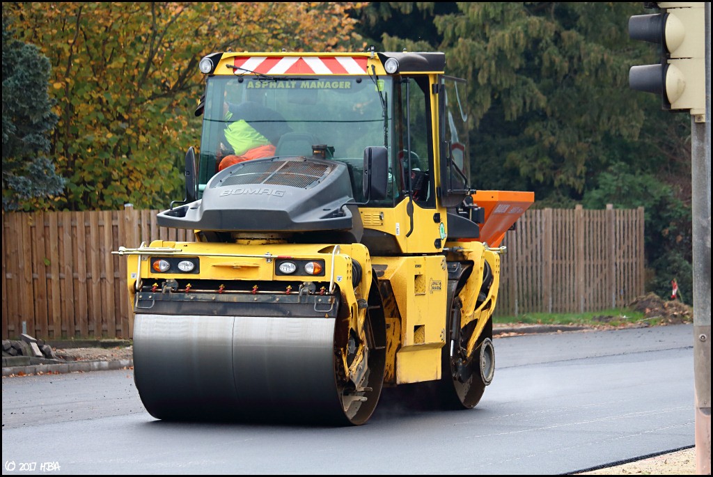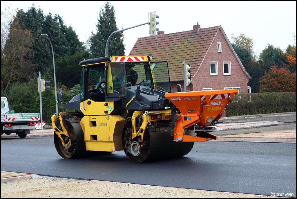 HBA 14.407 Geschrieben 14. Juni 2017 Autor Geschrieben 14. Juni 2017 Neben den schon bekannten Fertigern auf der Baustelle stand auch noch ein Bomag BF300P am Rand geparkt, wurde aber zumindest in der Zeit, in der ich dort fotografierte, nicht eingesetzt. Zitieren