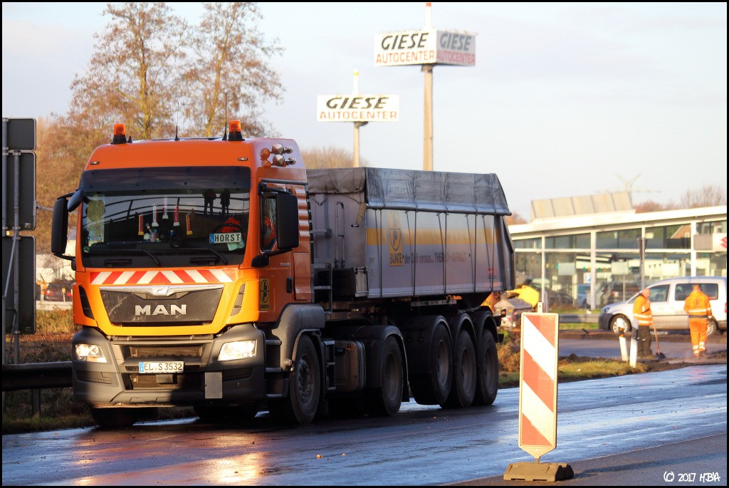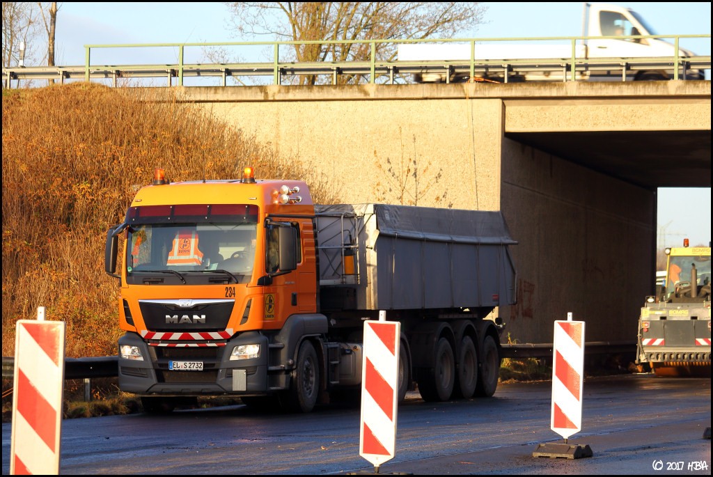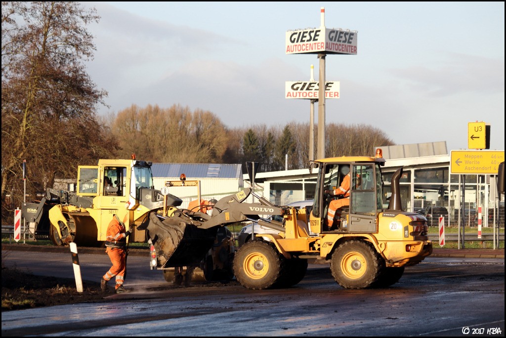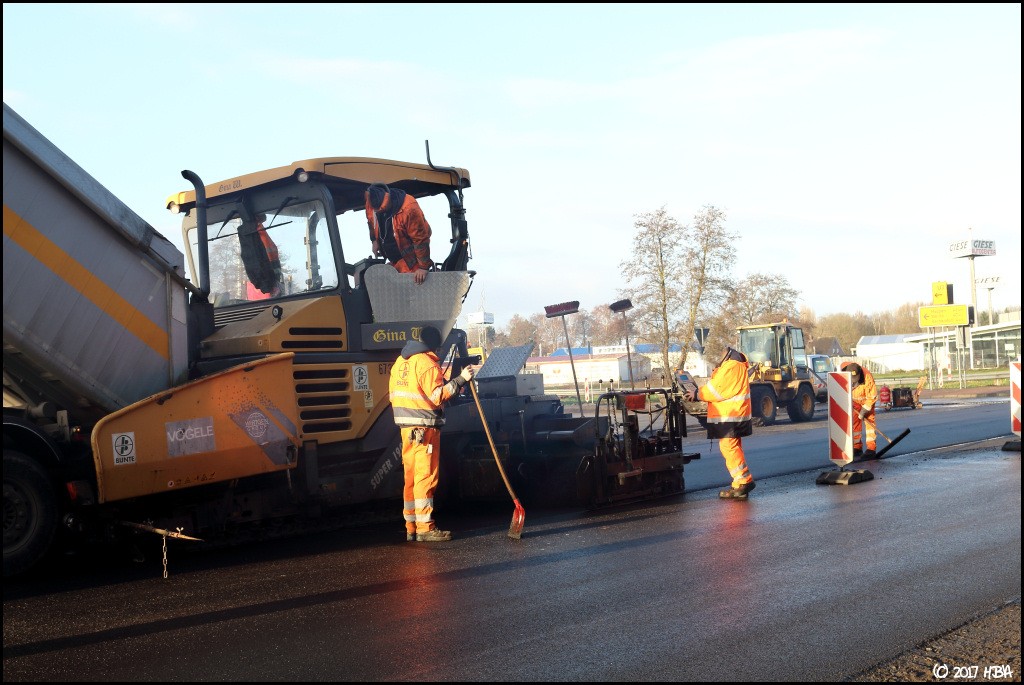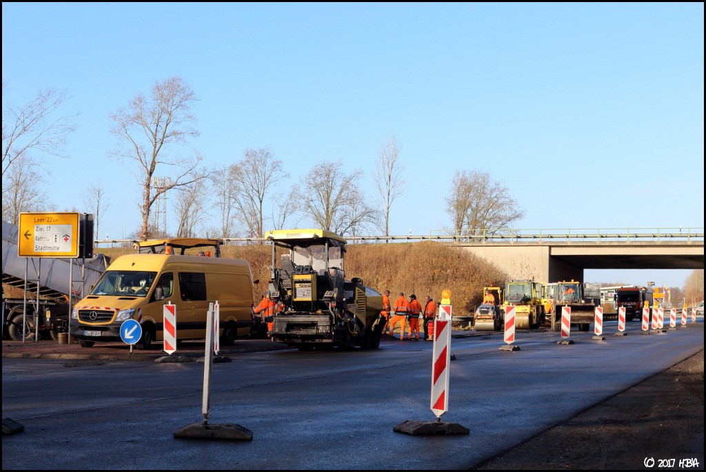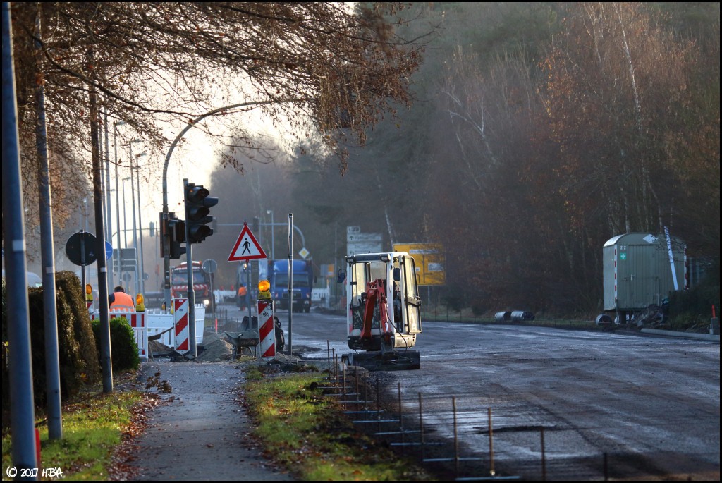 HBA 14.407 Geschrieben 10. Juni 2017 Autor Geschrieben 10. Juni 2017 Anfang Dezember begann man damit, einen Bauabschnitt am entgegen gesetzten Ende der Baustelle zu asphaltieren. In diesem Abschnitt liegen die Zu- und Abfahrten einer vielbefahrenen Bundesstrasse, die Arbeiten hier fanden nicht unter Vollsperrung statt. Vielmehr wurde der Verkehr von und zur Bundesstrasse unter Ampelregelung einspurig an der Baustelle vorbei geleitet. 1 Zitieren