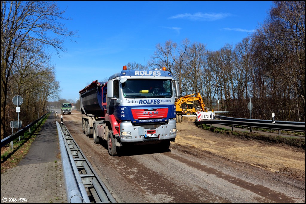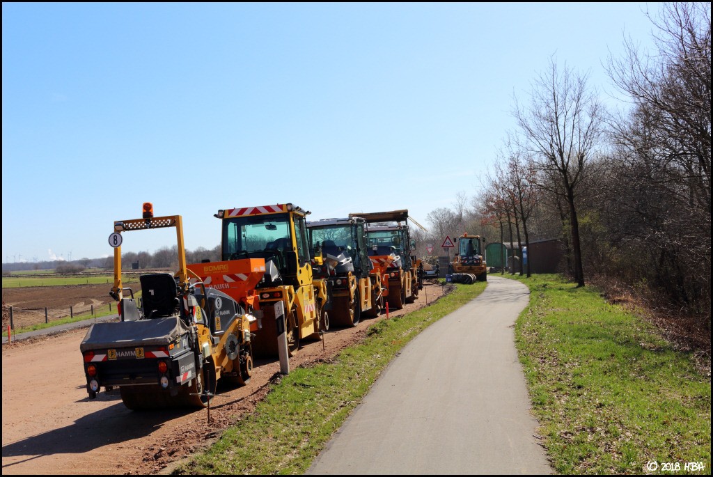 HBA 14.411 Geschrieben 20. Juni 2018 Autor Geschrieben 20. Juni 2018 Walzen und Fertiger für den Asphalteinbau im ersten Bauabschnitt standen bereits bereit: An der Strassenabfahrt Richtung Dörpen wurde ebenfalls eifrig gearbeitet. Der Abschnitt von Heede bis zu dieser Abfahrt musste früher freigegeben werden, da Heede in allen Belangen auf die Dörpener Infrastruktur angewiesen ist. 1 Zitieren