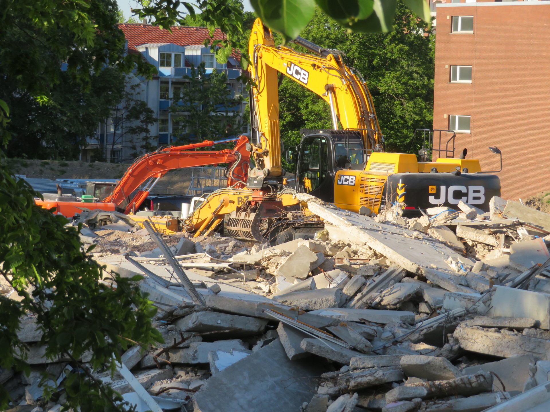 caterpillar91 1.541 Geschrieben 25. März 2019 Geschrieben 25. März 2019 vor 1 Stunde, Schrotti schrieb: Nach der Sprengung begann das lange Warten, bis man die Sperrzone wieder betreten durfte. Die Polizei kontrollierte, ob es Schäden gab. Ein größeres Problem war wohl, dass Teile des Gebäudes ein paar Feuerwehrschläuche beschädigten, so dass Wasser und Schlamm auf die Straße flossen. Um 15:30 Uhr war es soweit. Die Sperrzone wurde aufgehoben. Ein paar Bilder von den Resten des Weißen Riesen. Die Feuerwehr packte alles zusammen. Und am Horizont wurde der Blick frei auf ein Bauwerk, welches als nächstes weichen wird. Allerdings ohne den Einsatz von Sprengstoff. Der Liebherr HS895 von SAT lauert schon... 😛 Zitieren