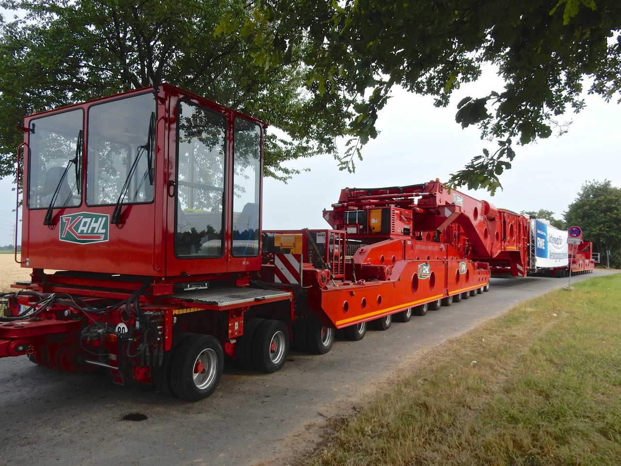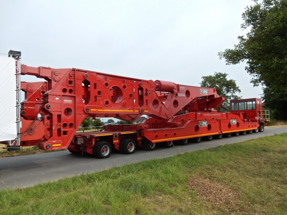tomac 11.854 Geschrieben 7. Juli 2018 Geschrieben 7. Juli 2018 Dann fange ich doch einfach mal an. Nachdem der Generator mit einem SPMT in Lörrick vom Ponton und über den Rheindeich gerollt war, wurde auch schon direkt zum ersten Mal umgeladen. Denn mit dem SPMT wäre die nächsten Etappen nicht zu schaffen gewesen. Dienstag Nacht ging es, verladen auf Kahl's G2 / K Brücke von Greiner mit 2x14 Modulachsen von Goldhofer bis nach Osterrath. Dort habe ich den Transport am Mittwoch Abend fotografiert. Leider waren um 18 Uhr noch keine Zugmaschinen und Begleiter vor Ort. Aber so bekommt man erst einmal einen Eindruck von der Größe des Transports. 1 Zitieren