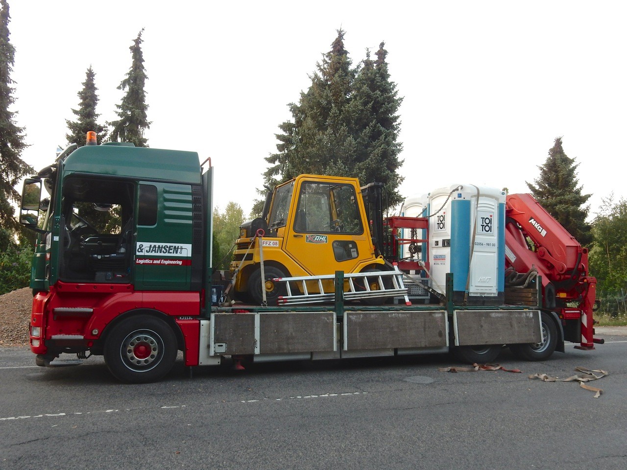 tomac 11.854 Geschrieben 7. Juli 2018 Geschrieben 7. Juli 2018 Weiter geht es mit zwei MAN TGX Dreiachsern mit Heckkran, die ebenfalls für den Transport von Zubehör zuständig sind. Mit dem MAN TGS Sattel von MSL werden Blechplatten transportiert, die auf der Strecke über Verkehrsinseln oder wenig tragfähige Stellen gelegt werden. Der Zug ist vom Kran aus verfahrbar. 2 Zitieren