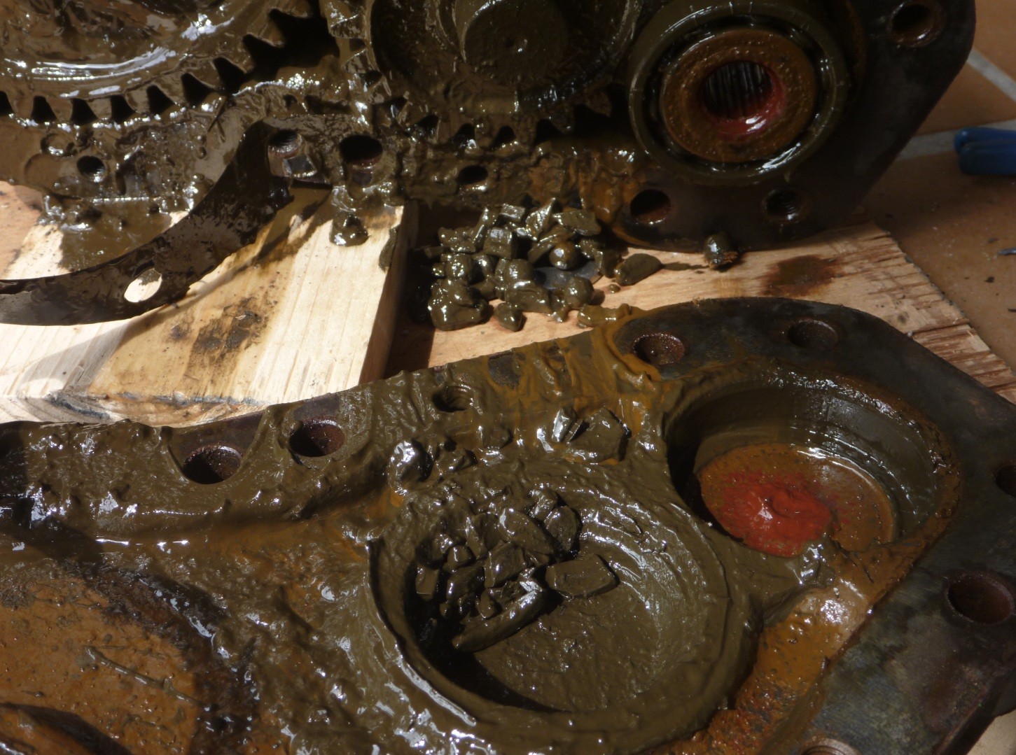 seleveng 1 Geschrieben 27. August 2017 Autor Geschrieben 27. August 2017 Gestern kam ich etwas voran... Das Gehäuse ist offen und brachte eingiges zum Vorschein. Die Zahnräder sehen nicht so schlecht aus. Nur an wenigen Zähnen gibt es kleine Ausbrüche. Viel schlimmer ist die Tatsache, dass die Lager des mittleren Zahnrades komplett "zerbröselt" sind. Aufgrund der fehlenden Führung des mittleren Zahnrades, ist es sehr wahrscheinlich im Gehäuse etwas gewandert und hat dabei die Lagersitze stark "zerrieben". Als nächstes werde ich versuchen, die restlichen Teile der Lager zu entfernen. Vielleicht wäre es eine Lösung, die Lagersitze mit ein paar Schweißraupen "aufzufüllen" und dann wieder auf Passung auszuspindeln? Mehr Schaden kann ich wahrscheinlich nicht verursachen. Zitieren