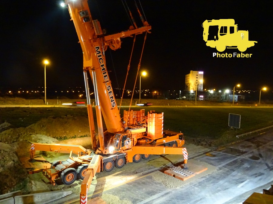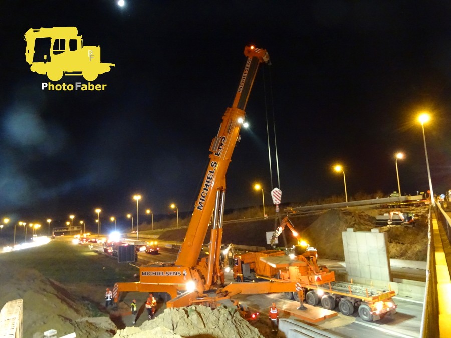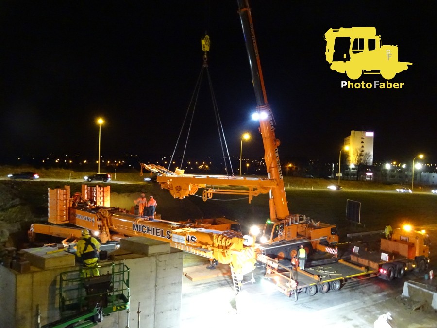 PhotoFaber 74 Geschrieben 24. Februar 2018 Geschrieben 24. Februar 2018 (bearbeitet) Hallo zusammen, es ist wieder soweit: ich habe neue Bilder für euch . Gestern Nacht habe ich eine Hebeaktion von einem (von vier) Brückenteilen über eine Autobahn hier in der Nähe (E314) fotografieren können. Die Autobahn wurde/wird dort gestern und heute Nacht von 21h bis 7h komplett gesperrt. Da die Brücke eine Fahrradbrücke in der Höhe einer Ausfahrt wird, kann der Verkehr von der Autobahn einfach über die Ab- und Auffahrt umgeleitet werden, sodass unten auf der Bahn Platz zum arbeiten ist. Die Ausführende Firma ist "BAM", zusammen mit u.a. dem Kranbetrieb "Michielsens nv/sa". Jetzt gibt es die Bilder für euch: Wenn ich das richtig sehe, war der große Kran (hier drunter) ein Demag AC700 ?! Die beiden Brückenteile für Seite (und Nacht) eins kommen an. Auch die Polizei hat den Transport mit bis zur Baustelle begleite, ist auf dem Foto aber schon wieder weg. Dann schlängelten sich die beiden Transporte durch einen kurz vorher erstellten Leitplankendurchbruch, ... ... während das Kran Team die Platten für die Stützen platzierte Der Mond schaute auch zu Die Bucht in der der Kran steht, wurde eigens dafür angelegt Der zweite (kleinere) Kran beginnt seinen Dienst bei der "Aufbauhilfe" Die Temperatur hier, heute Nacht betrug -5°C mit einem eisigen und schneidenden Wind. Dementsprechend waren auch alle gut eingepackt. Der Arm vom "dicken" Kran ist echt gewaltig! Dann wurde das Lastenverteilungsgestänge (das hat doch sicherlich auch einen richtigen Namen oder ? ) aufgesetzt und der große Haken angehängt Startklar! Jetzt kann's los gehen. Das Brückenteil näher ran stellen, alle Seile und Schlaufen einhängen und anspannen ... ... ready for take off Und schon hing das riesige Teil frei in der Luft Ein bisschen drehen. Im Hintergrund sieht man hier, dass die neue Böschung gleichzeitig schon mal profiliert wird Das Brückenteil wieder ablassen (man beachte die riesigen Schäkel) Und passt perfekt! Mittlerweile war es ca. 1.30h, wenn ich mich recht erinnere. Bis sieben Uhr, blieb für das zweite Teil also noch locker Zeit. Ich hoffe, die Bilder haben euch gefallen! Würde mich wie immer sehr über Rückmeldungen freuen ! LG und ein schönes WE, Faber bearbeitet 24. Februar 2018 von PhotoFaber 2 Zitieren