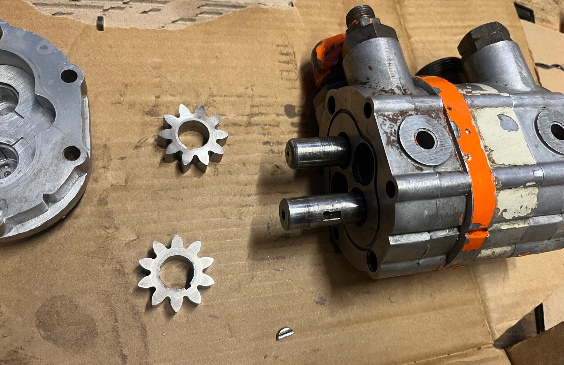schweissertom 2 Geschrieben Sonntag um 06:28 Geschrieben Sonntag um 06:28 Guten Morgen ich glaube ich habe das Problem gefunden. Hinten an der SPV22 ist eine doppelte Zahnradpumpe. Für was ist die eigentlich genau bzw warum 2? Die hinteren Anschlüße führen zur AMV24 nach vorne, wo kein Druck mehr richtig ankommt. Die beiden kleinen Zahnräder haben sehr viel Spiel auf der Welle. Ich denke hierbei wird kein Druck mehr aufgebaut? Die Keile auf der unteren Welle haben haben auch viel Spiel Kann man hier etwas erneuern? Zitieren