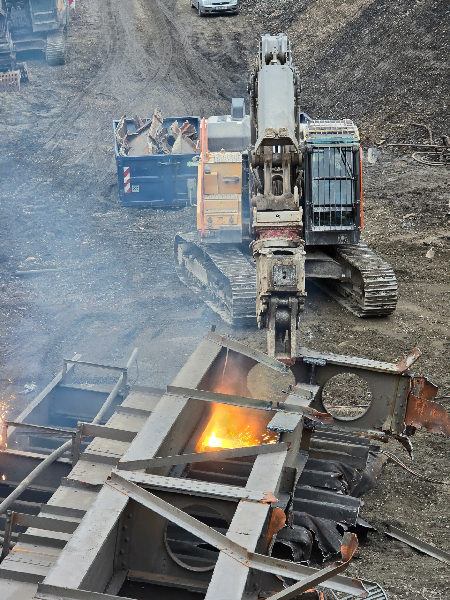 anny05 4.250 Geschrieben 30. Januar 2024 Autor Geschrieben 30. Januar 2024 Direkt im Anschluß wurde begonnen die beiden Vorlandbrücken mittels Bagger mit Schrottschere abzubrechen. Auf der Ruhrorter Seite hat der 966 angefangen mit dem Abriss der Vorbaubrücke. 6 Zitieren