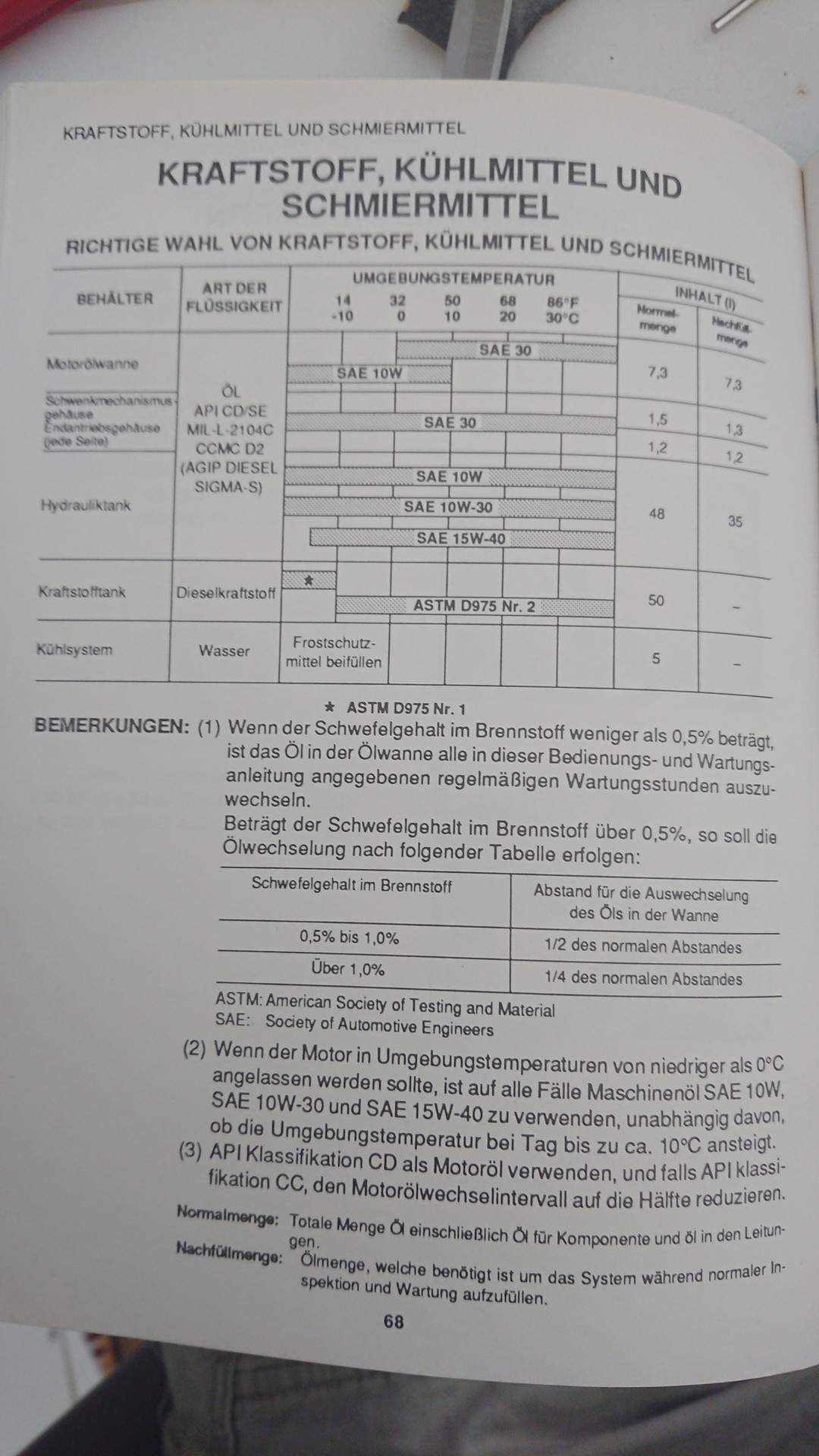 Oldtimer-fan 0 Geschrieben 16. August 2020 Autor Geschrieben 16. August 2020 Ok... also normales motoröl für die hydraulik? Ich hätte jetzt mit einem 46 gerechnet... den schwenkantrieb hatte ich noch gar nicht auf dem schirm... danke für den tipp Wenn ich das so zusammen rechne lohnt es wohl ein fass 15w40 zu kaufen und das für motor und hydraulika zu nutzen, das sae30 für die getriebe suche ich gleich mal Zitieren