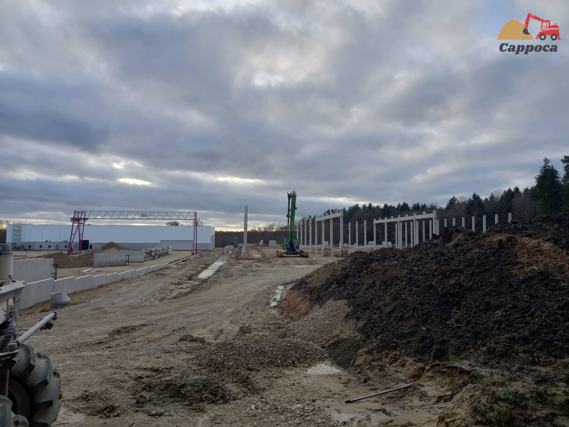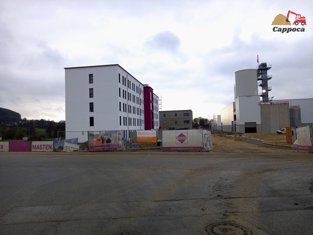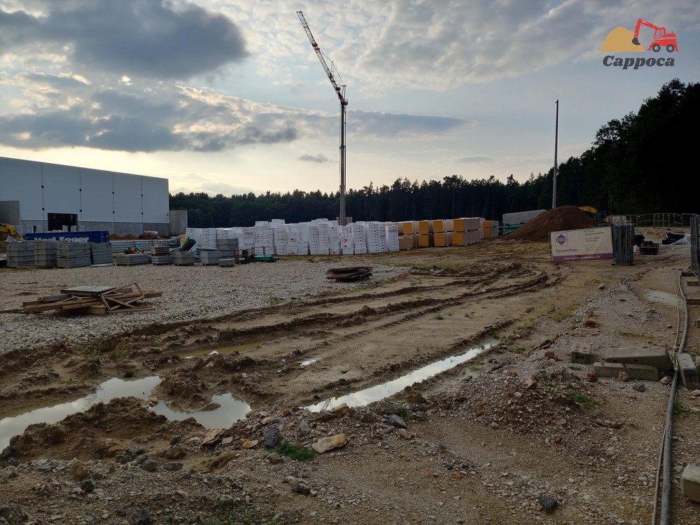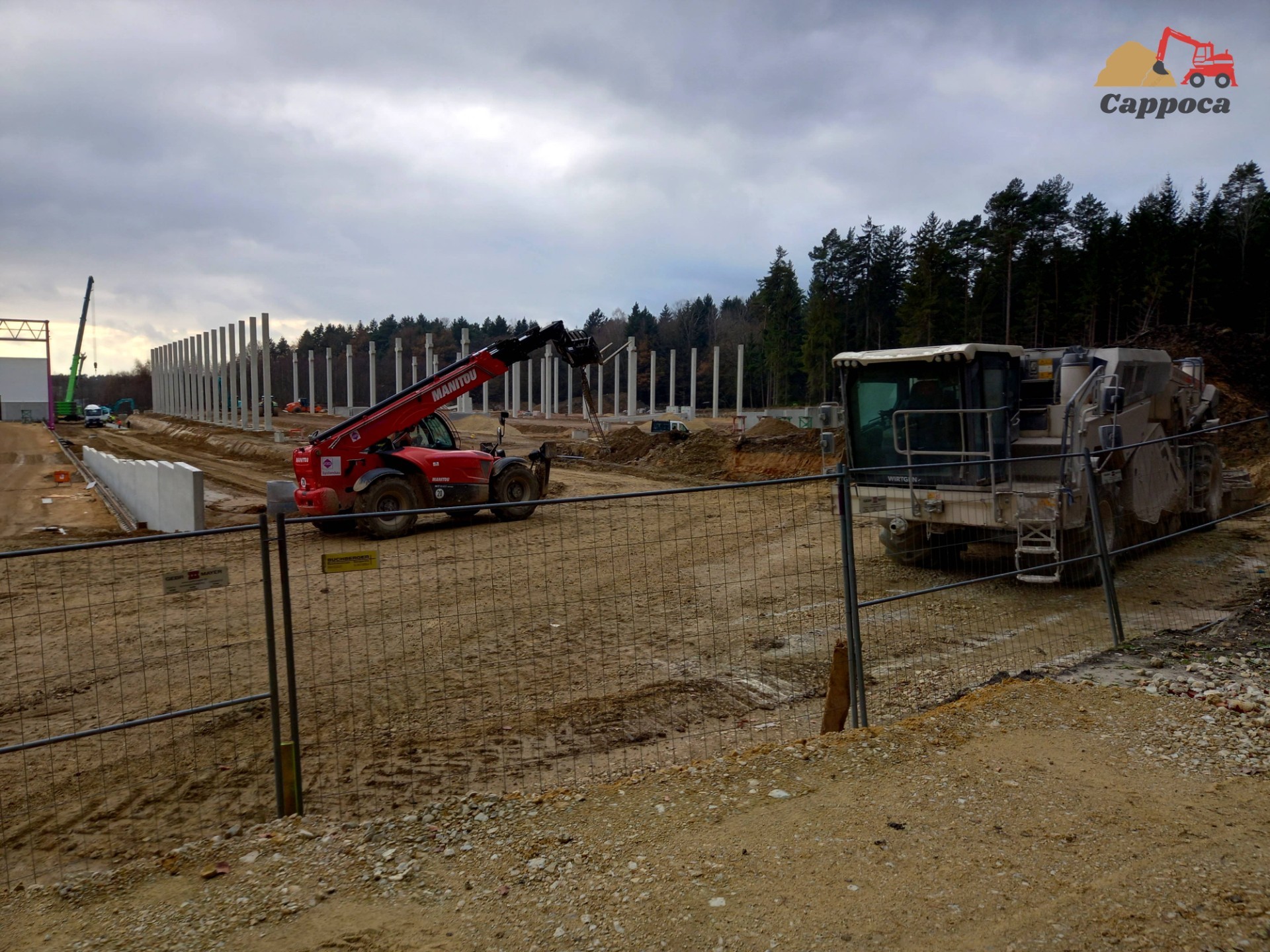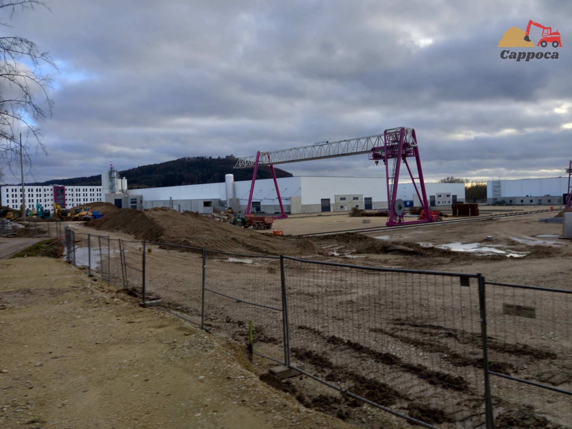 Cappoca 134 Geschrieben 7. Dezember 2021 Autor Geschrieben 7. Dezember 2021 Schon Wahnsinn wie das ganz hier wächst.... Bilder von letzter Woche: Nun steht auch der 2. Portalkran: Die ersten Pfeiler für die nächste Halle stehen auch schon. Dadurch dass auf der Fläche, auf der die Hallen gebaut werden Wald war, muss der ganz Boden stabilisiert werden. Die Bodenstabilisierung basiert auf Kalk. Dies geschieht mit dieser Wirtgen W 240i. Dieser Manitou hol gerade Schachtringe. Weiter vorne am Gelände wurde auch bereits das Gerüst des Bürogebäudes abgebaut. Habe auch schon gesehen, dort brennt schon das Licht. Die Borde für die -mögliche Asphaltierung- wurden auch schon gesetzt. VG Cappoca 2 Zitieren